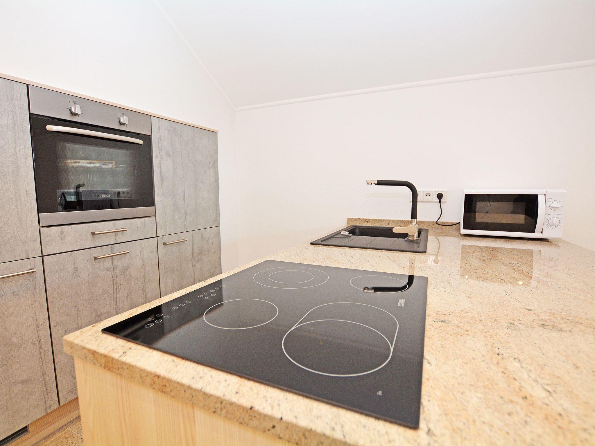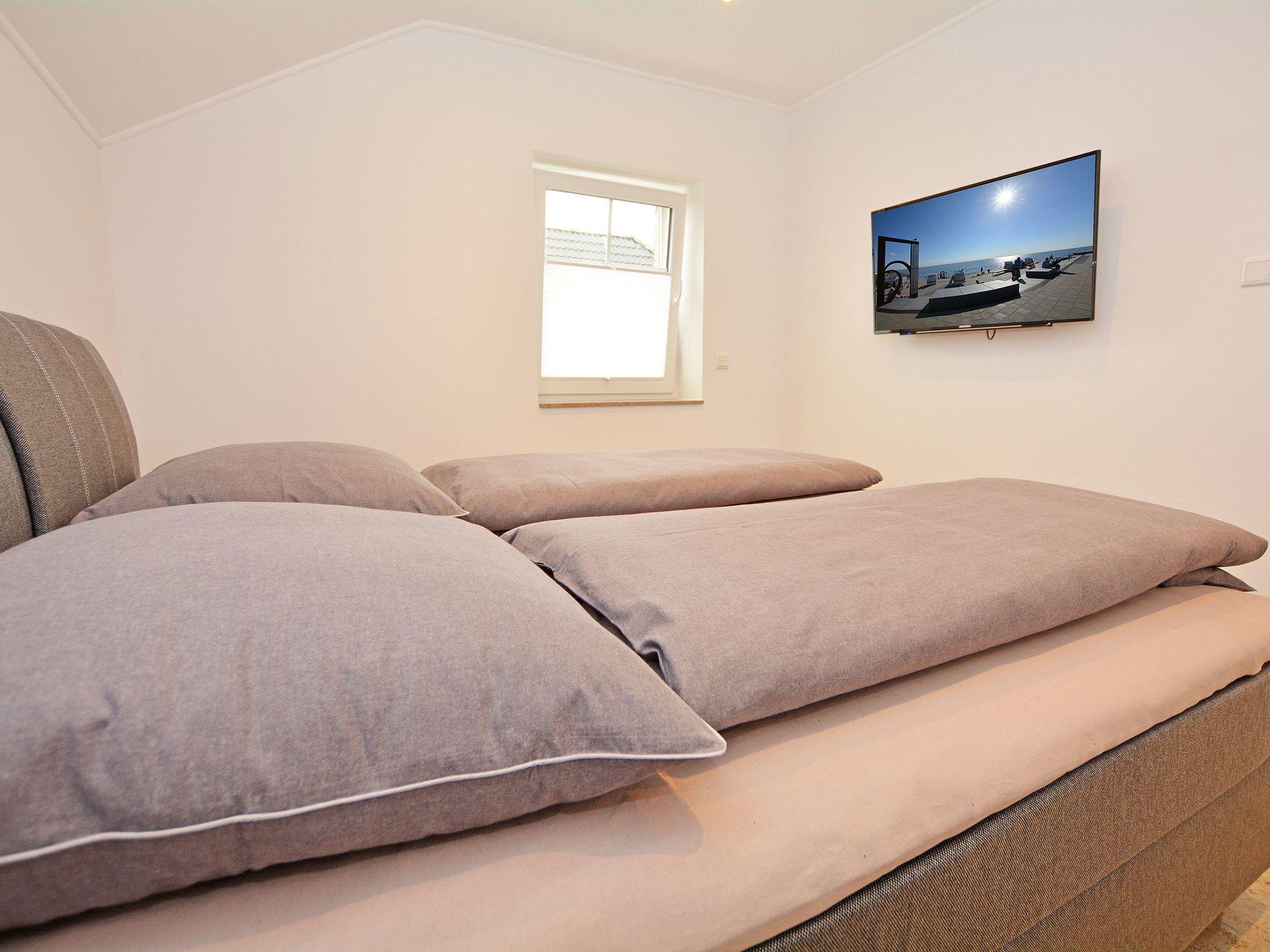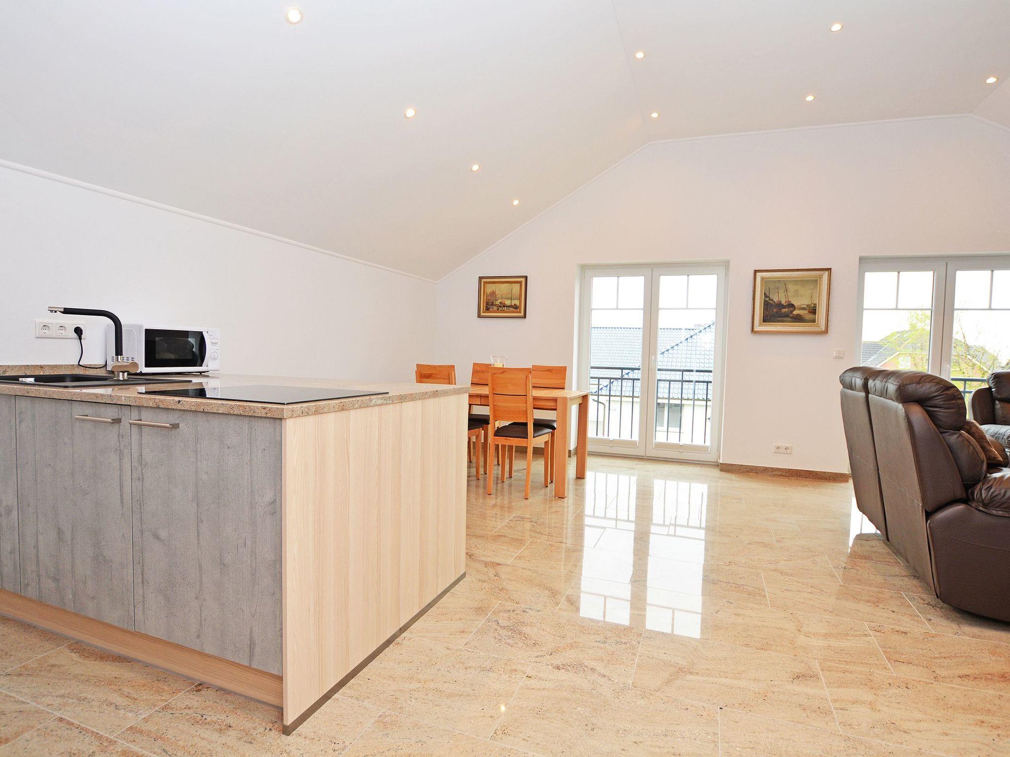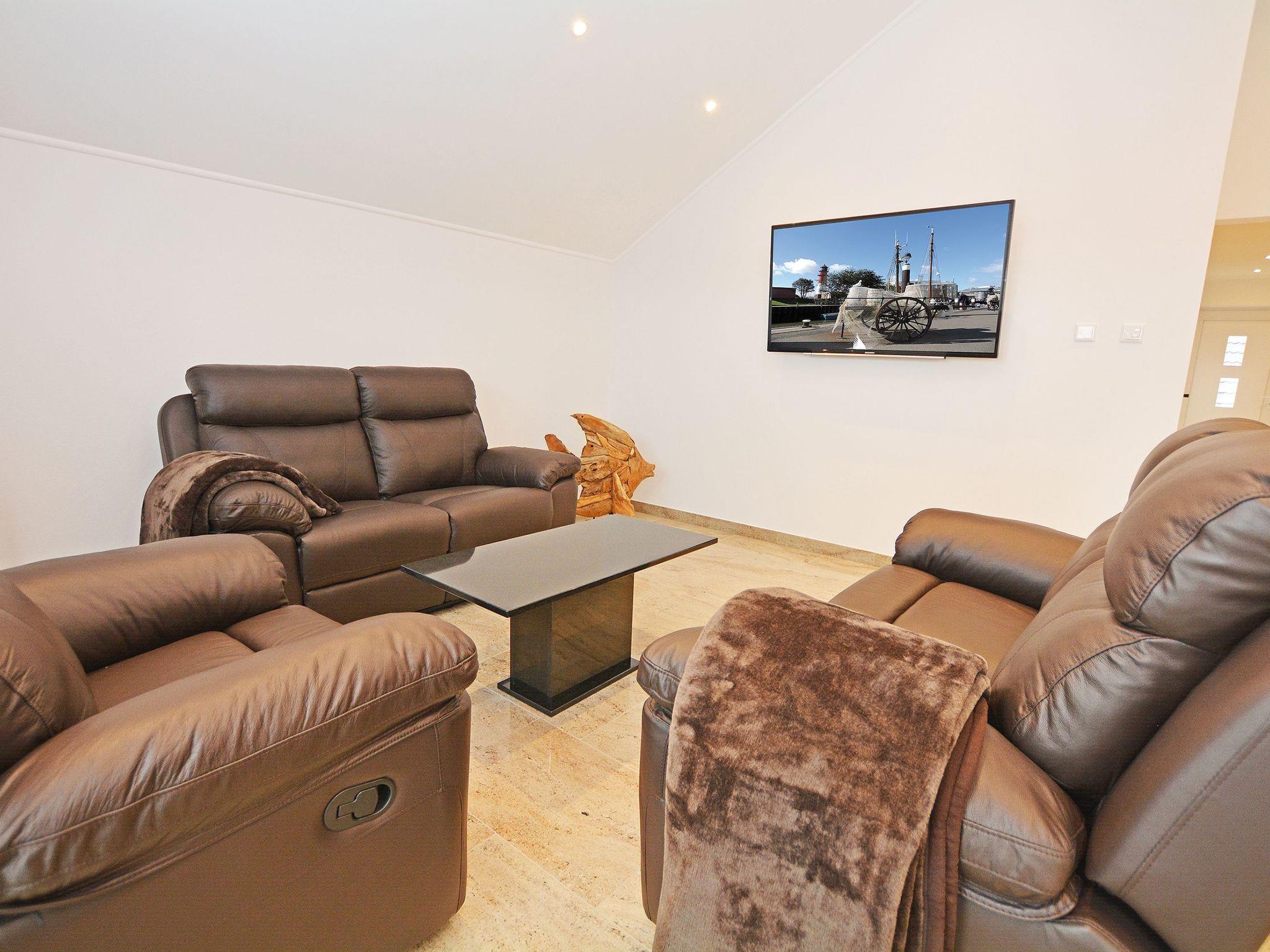 Final cleaning included in the rental price Bed linen included in the rental price Towels included in the rental price Travel cot included in the rental price (optional) High chair included in the rental price (optional) Bedrooms I and II: Box spring bed (200 * 180 cm) Two elegant bedside tables made of high-quality natural stone TV flat screen TV with internet access Wardrobe One bathroom: Rain shower Hand shower WC Hairdryer/ hairdryer holder Washbasin Mirror Approx. 30 sqm open-plan room Consisting of: A) Living room Leather suite TV Natural stone table B) Dining area Spacious dining table with 4 chairs C) Modern kitchen Cooking island with tall units Natural stone kitchen worktop Built-in appliances: Refrigerator, dishwasher, microwave, oven, coffee machine, hob Silgranit sink, kettle, toaster, crockery, towels and household items are available for daily needs.