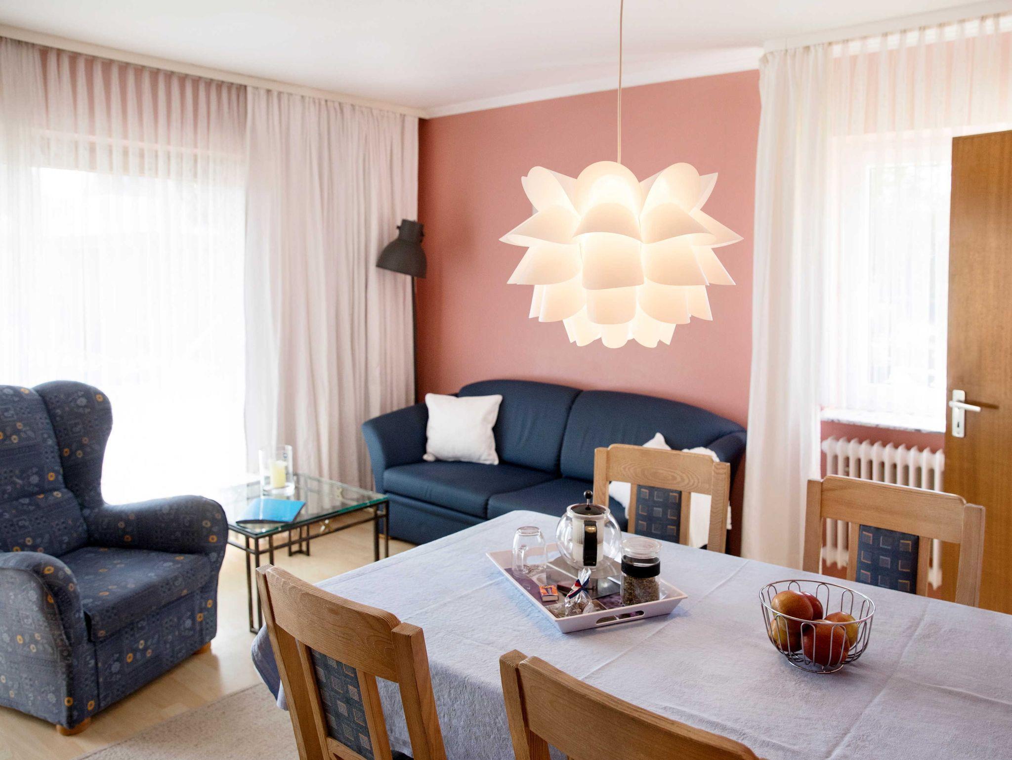 Die 53 qm große Nichtraucher-Wohnung für bis zu 4 Personen besteht aus einem Wohnraum mit Couch, einem Schlafraum mit Doppelbett (ohne Fußbrett) und Babybett, einem Kinderzimmer mit Etagenbetten, Küche mit Spülmaschine, Herd mit 4 Kochstellen, Mikrowelle und Kühlschrank mit 3-Sterne-Gefrierfach. Duschbad/WC. Die Wohnung ist komplett mit Laminat ausgelegt. Möblierte Süd-Terrasse. Die Wohnung befindet sich im Erdgeschoß eines zweigeschossigen Ferienhauses im Kurviertel von Büsum (Meeresluftzone), 200 m von Grün- und Sandstrand und dem Nationalpark Wattenmeer entfernt. Zum Zentrum sind es ca. 15 Gehminuten.