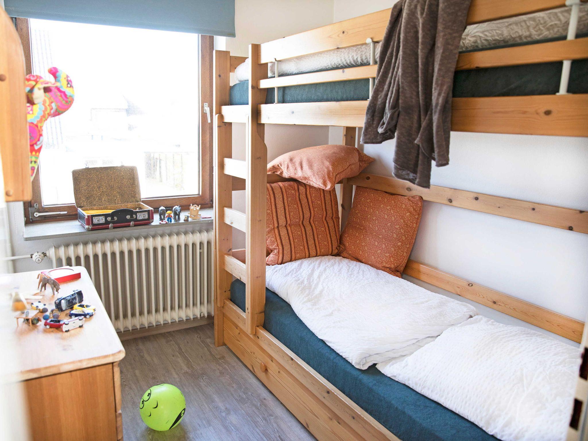 Die 53 qm große Nichtraucher-Wohnung im 1. OG für bis zu 5 Personen besteht aus einem Wohnraum mit bequemer Couch, einem Schlafraum mit Doppelbett (ohne Fußbrett) und Babybett, einem Kinderzimmer mit Etagenbetten, Küche mit Spülmaschine, Ceranfeld mit 4 Kochstellen, Mikrowelle und Kühlschrank mit 3-Sterne-Gefrierfach. Duschbad/WC. Die Wohnung ist komplett mit Teppich ausgelegt. In dieser Wohnung macht auch Ihr Haustier Ferien. Die möblierte Loggia ist nach Süden gerichtet. Die Wohnung befindet sich in der 1. Etage eines zweigeschossigen Ferienhauses im Kurviertel von Büsum (Meeresluftzone), 200 m von Grün- und Sandstrand und dem Nationalpark Wattenmeer entfernt. Zum Zentrum sind es ca. 15 Gehminuten.