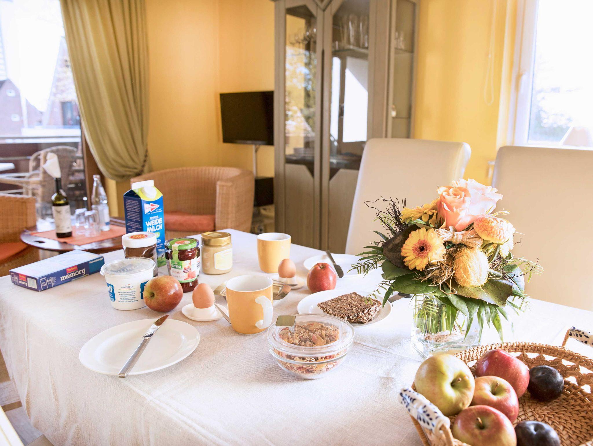 Gepflegtes Haus mit zehn individuell eingerichteten Ferienwohnungen. Unseren kleinen Gästen bieten wir Kinderhaus, Sandkiste, Turnreck und Schaukel, die Größeren erfreuen wir mit Tischtennis und Tischfußball. Und die Großen begeistert die Geschirrspülmaschine genauso wie die Mikrowelle, das Videogerät oder der DVD-Player, die Waschmaschine und der Wäschetrockner. Wenn die Urlaubsgrüße am letzten Abend noch nicht versandt sind ? kein Problem ? dafür haben unsere Gäste kostenlosen Internetzugang mit WLAN und ein Faxgerät. Und für Gäste, die unsere schöne Dithmarscher Landschaft durchradeln möchten, halten wir kostenlos Fahrräder ? auch mit Kindersitzen ? bereit. Wir sorgen für einen morgendlichen Brötchen- und Zeitungsservice, sowie einen Einkaufsservice und ein begrenztes Angebot an Getränken im Haus. Unsere Hausdame ist täglich im Objekt und hilft Ihnen gern mit Rat und Tat bei allen Fragen. Ihr Auto parkt natürlich kostenlos direkt am Haus.