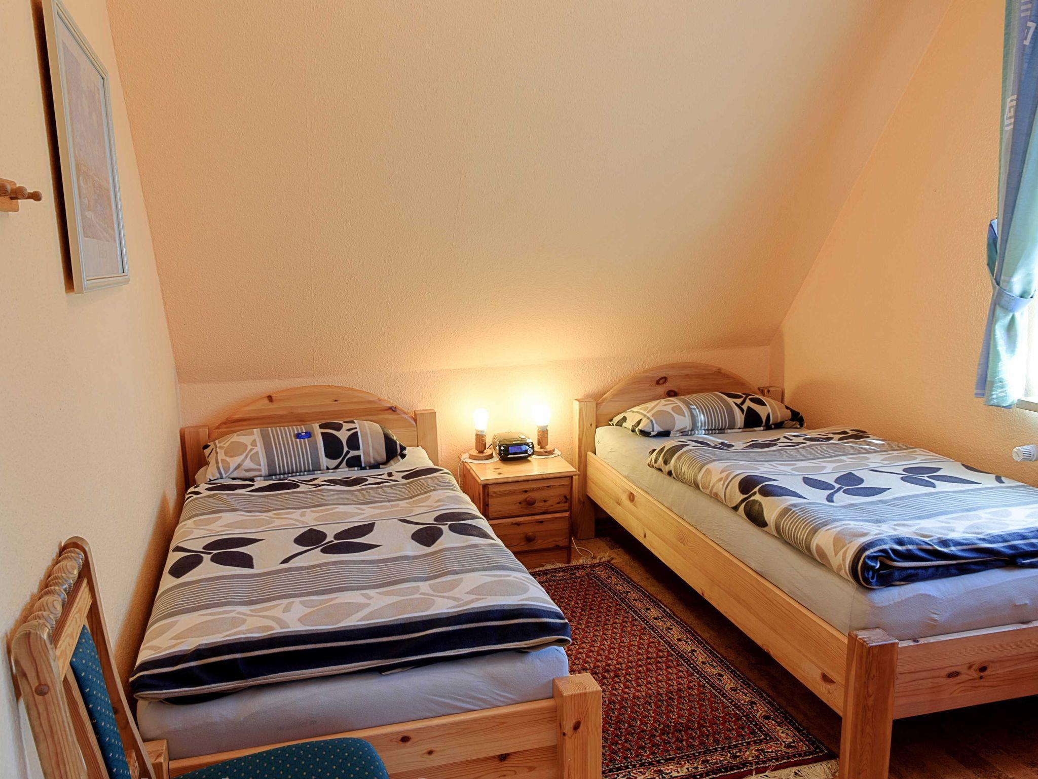 • 2. Schlafzimmer mit getrennt stehenden Betten (90x200 cm) und Kleiderschrank. Gute Matratzen und verstellbare Lattenroste, Radiowecker.