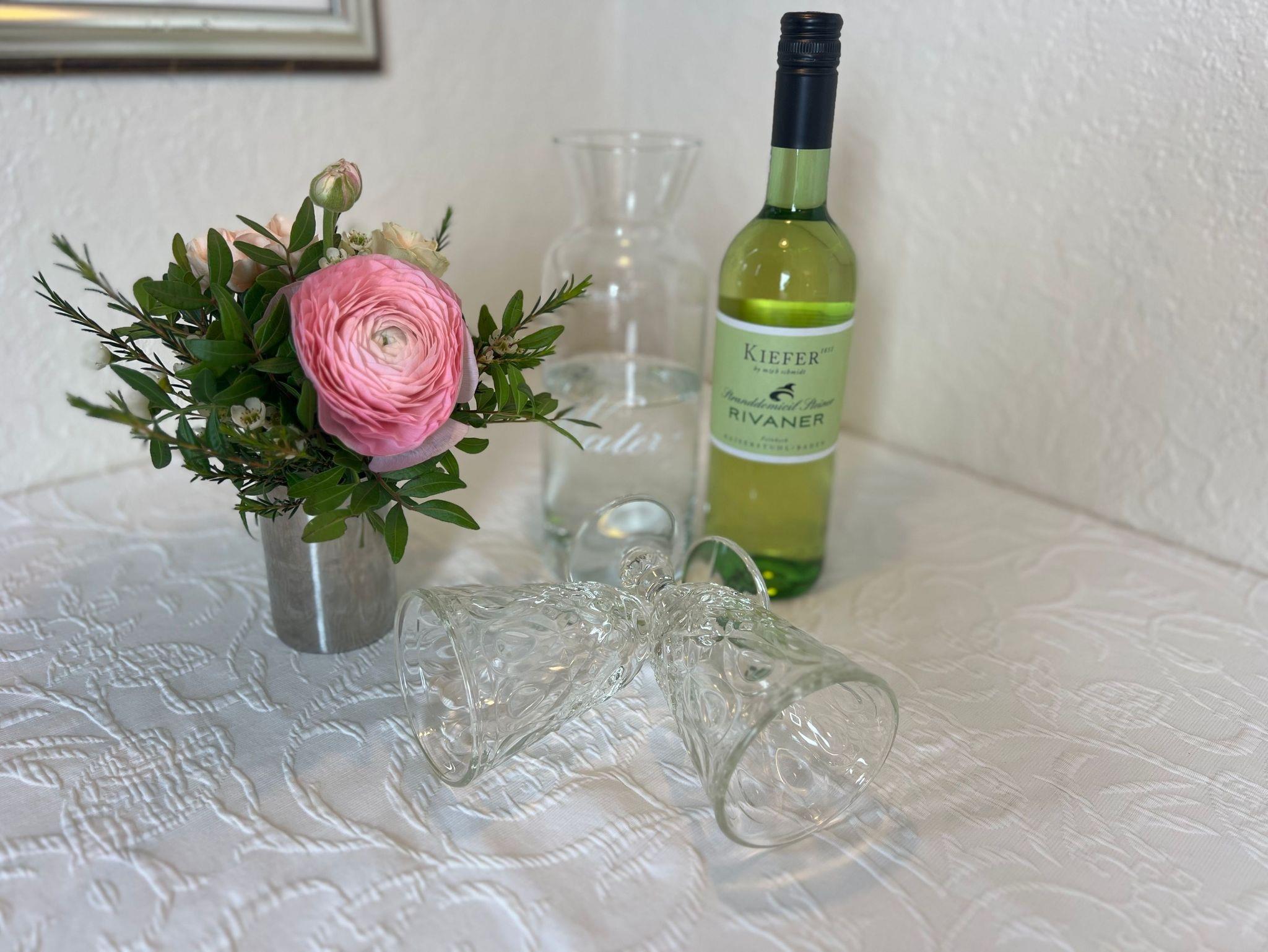 • Küche mit 2 Kochplatten, Dunstabzug, Spüle, Kühlschrank mit Gefrierfach, Kombigerät Mikrowelle/Backofen, Kaffeemaschine, Toaster und Wasserkocher. Die Küche ist komplett bestückt mit Geschirr, Bestecken, Töpfen, etc.