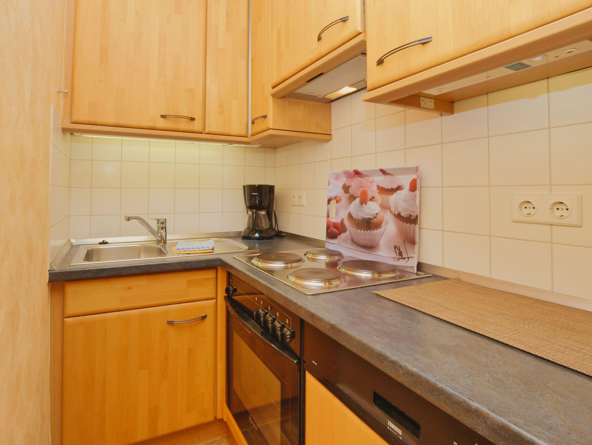 • Die moderne Küchenzeile mit Backofen, Grill, Mikrowelle, Dunstabzugshaube, Geschirrspüler, Kühlschrank mit Gefrierfach, 4- Kochfeldherd, Kaffeemaschine und sonstigen Küchengeräten. Die Küche ist komplett bestückt mit Geschirr, Bestecken, Töpfen, etc.