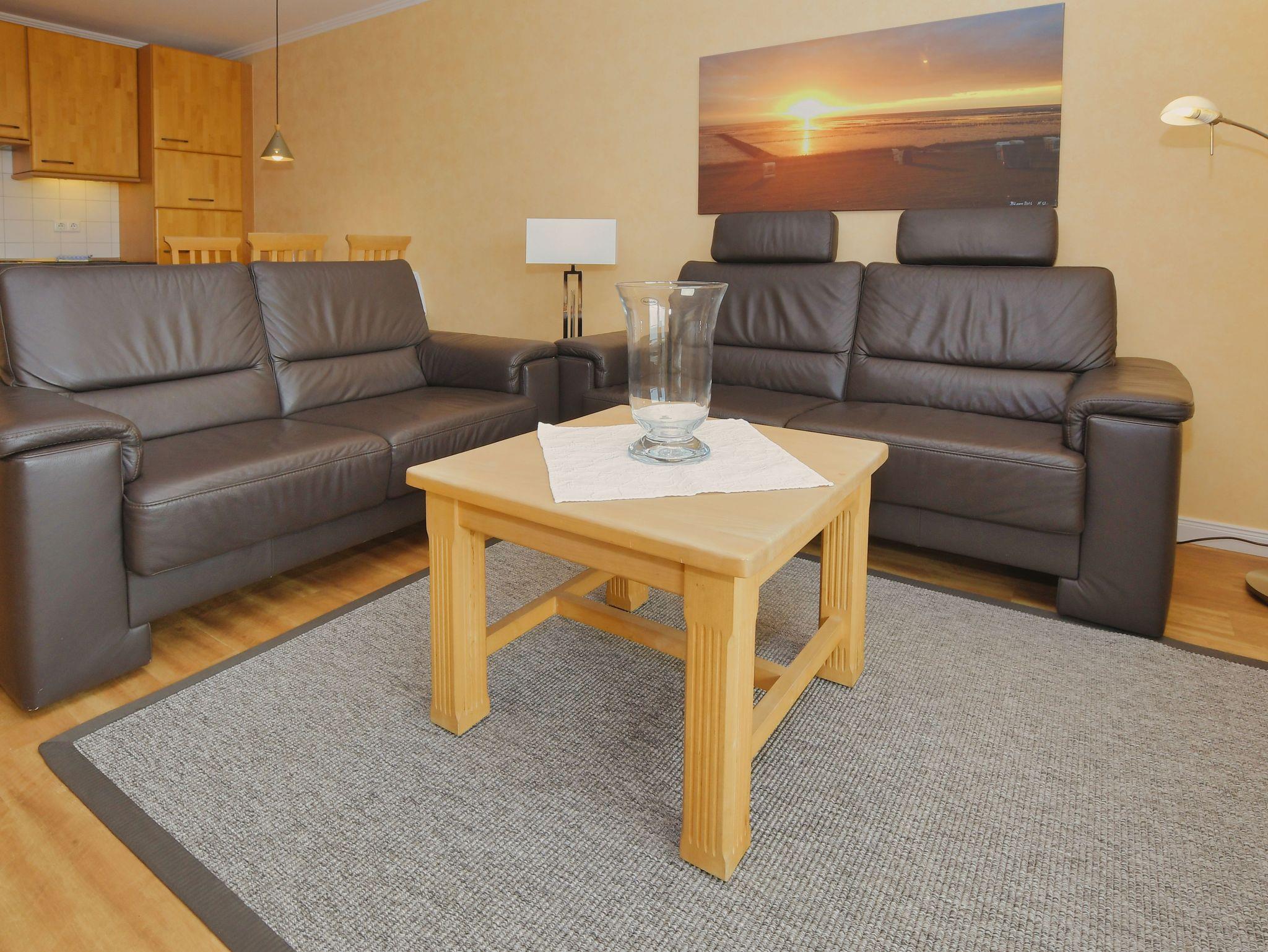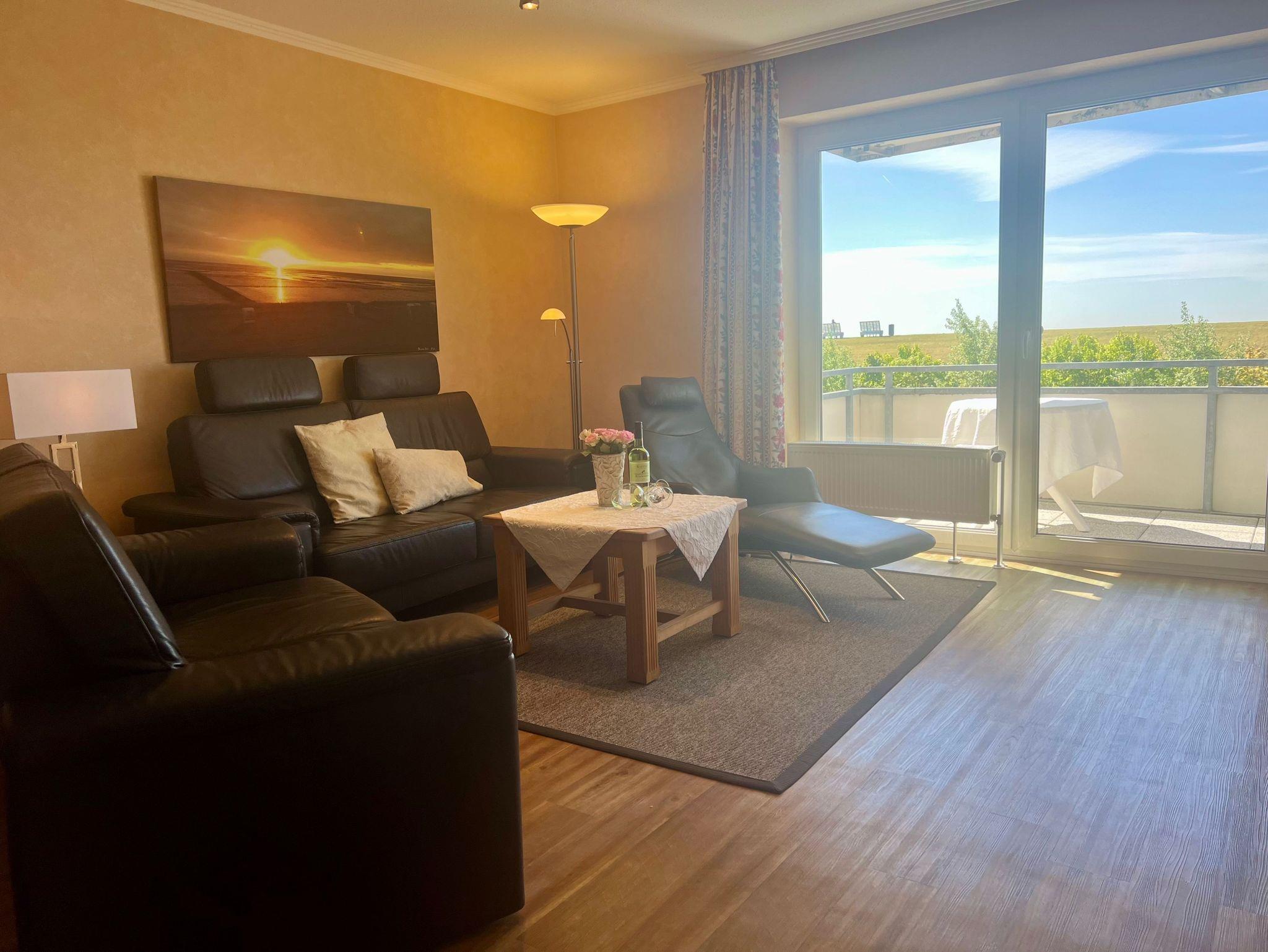 Geräumiges 3-Zimmer-Appartement für 4-5 Personen mit Blick über den Deich (bedingter Meerblick). Die beiden Schlafzimmer sind ruhig gelegen zur Rückseite des Hauses.