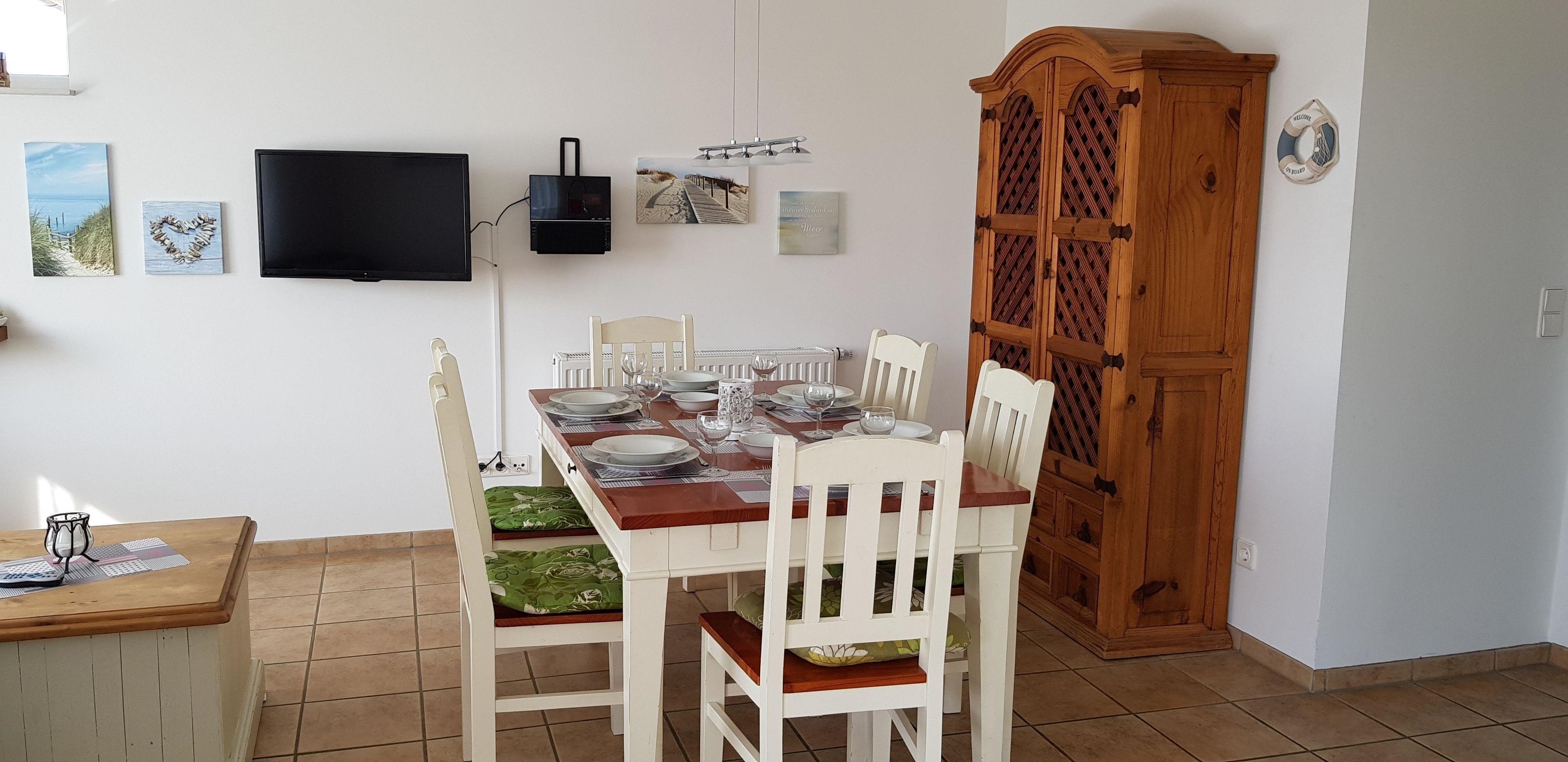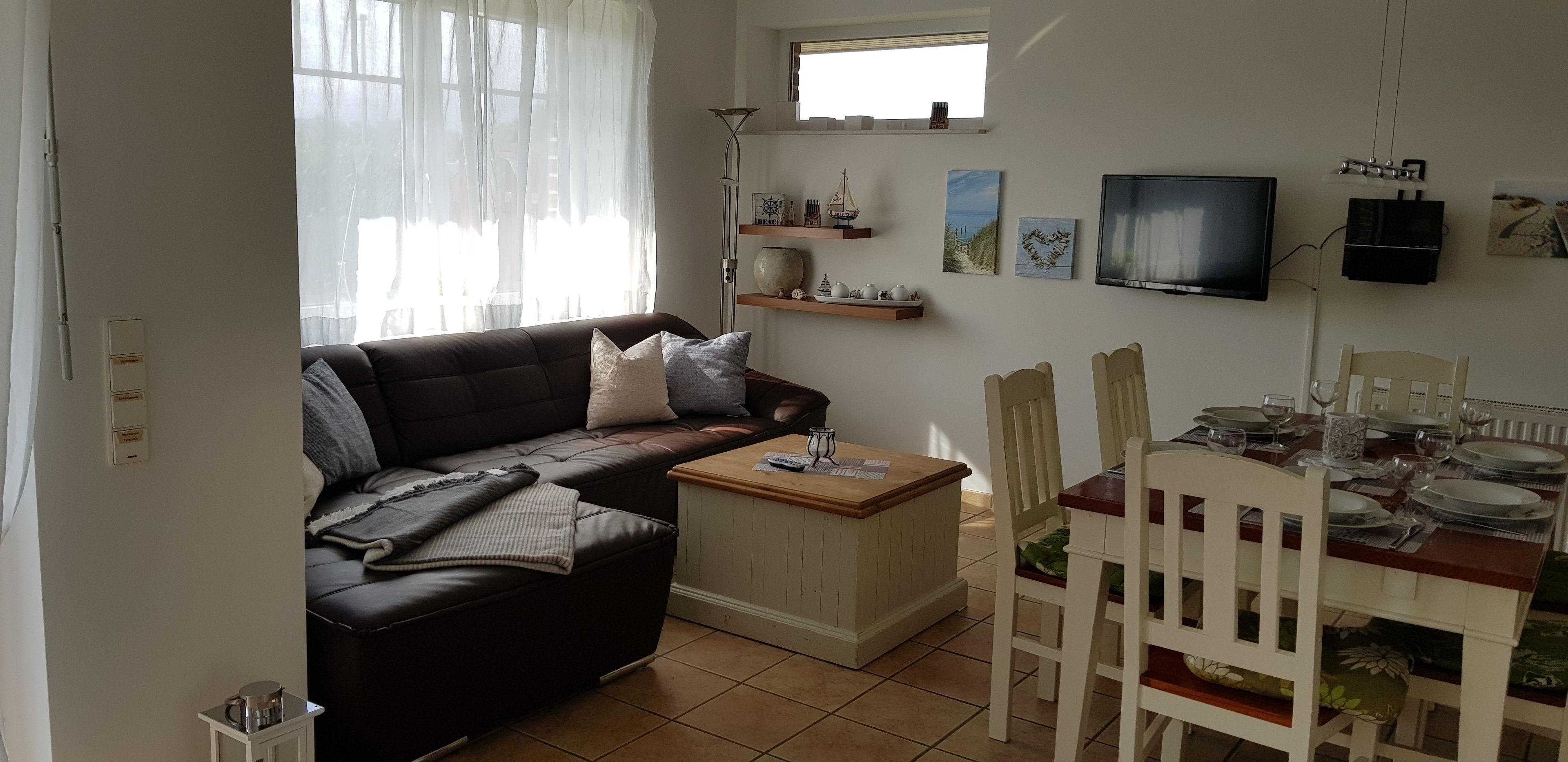 Ein kombinierter Wohn- und Essbereich mit Fernseher, CD-Player. 3 Schlafräume, Wlan, Terrasse, Nichtraucher, Hund nicht erlaubt.
