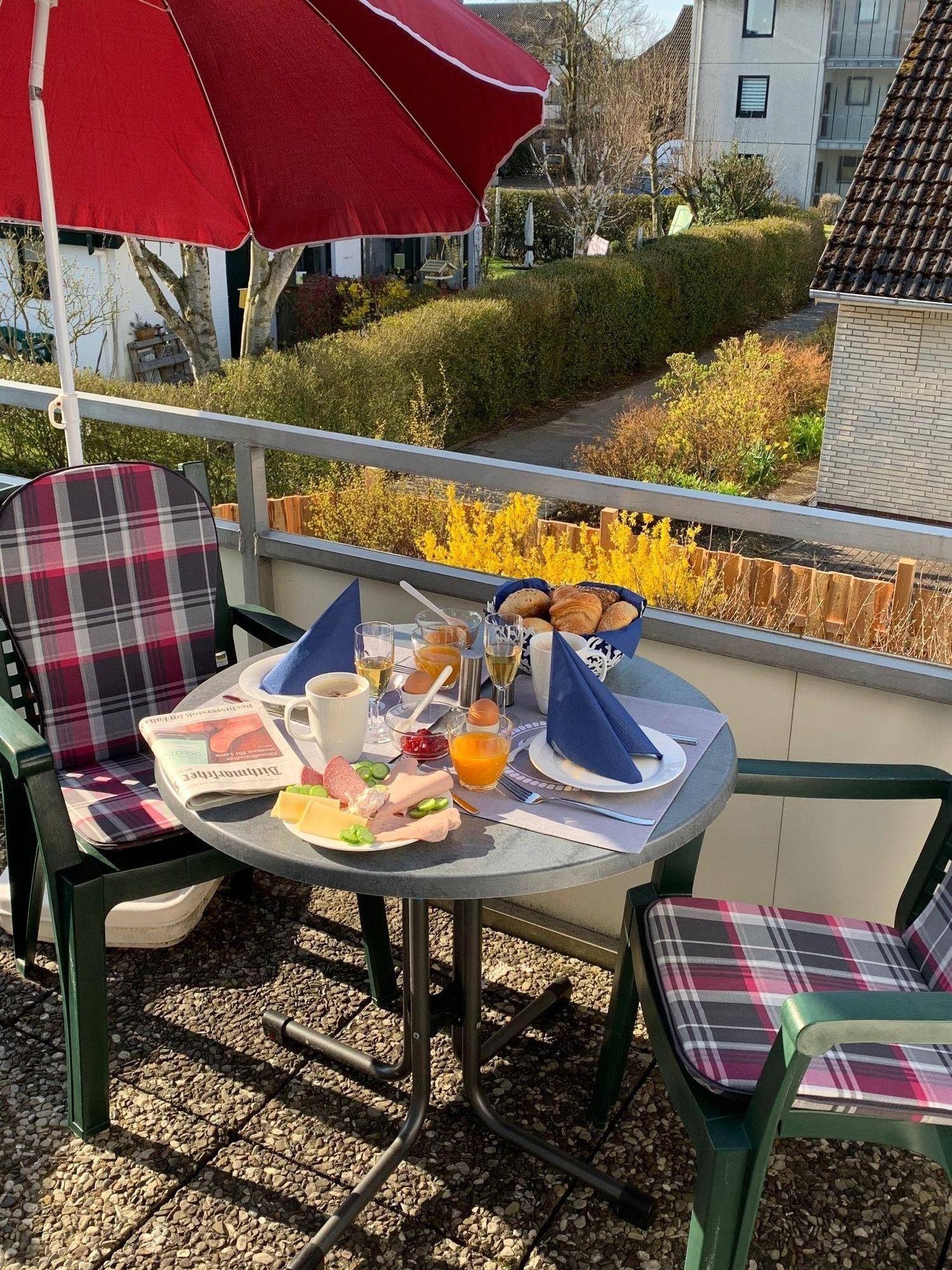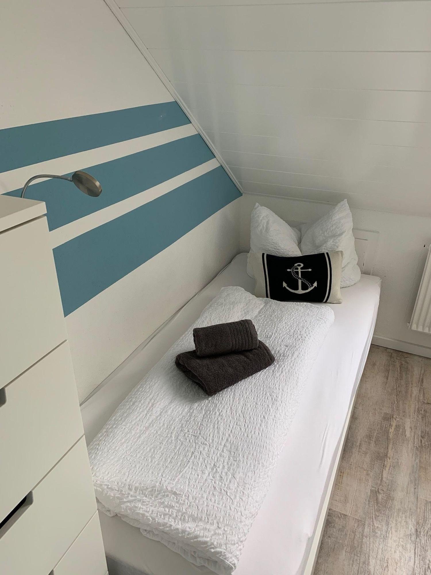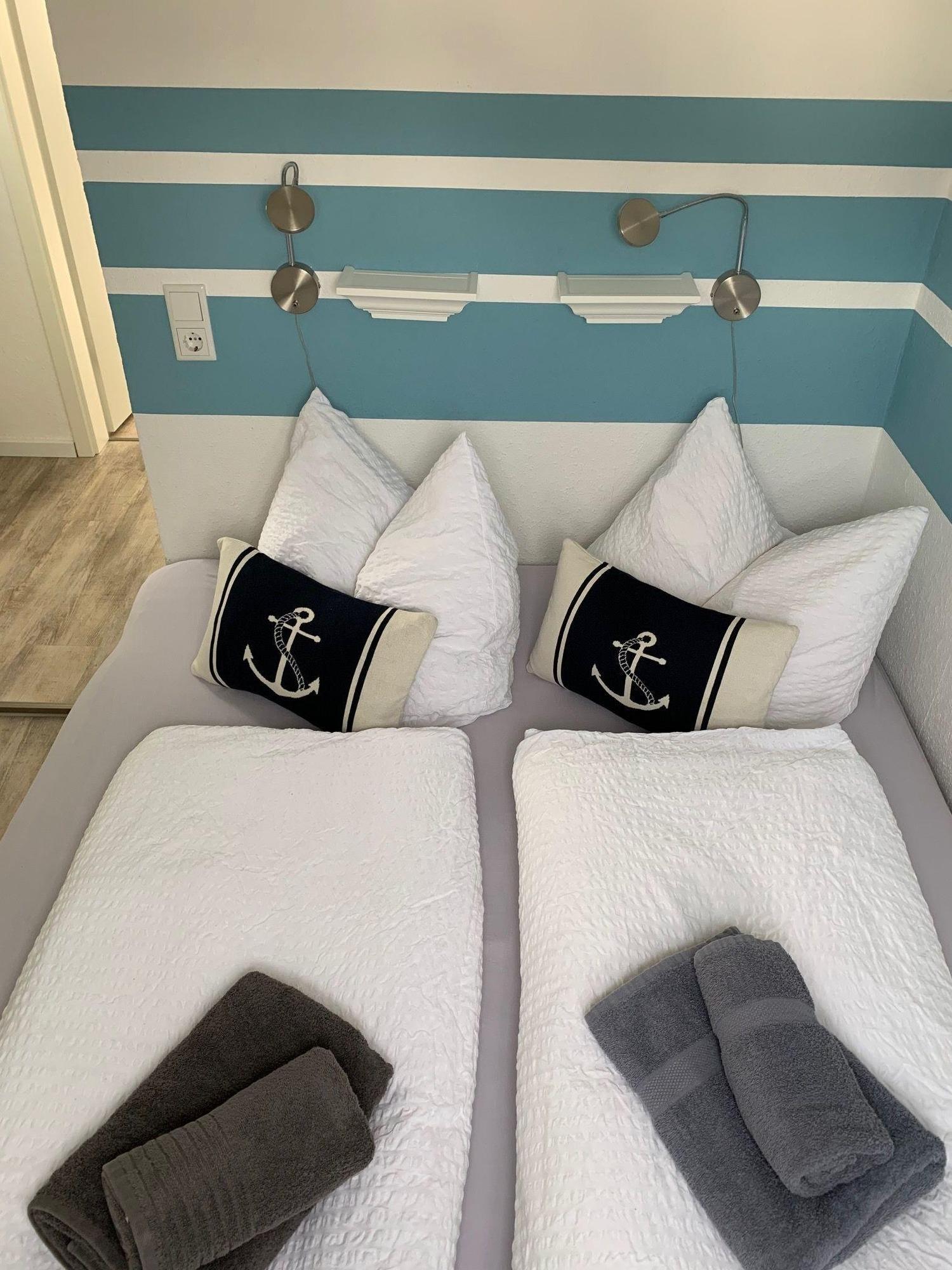 Die Ferienwohnung "Amrum" verfügt über einen Wohnraum mit vollständig ausgestatteter Küchenzeile, 2 separate Schlafzimmer (Doppelbett + Kinder Gitterbett / 2 Einzelbetten), Duschbad sowie einen Balkon.