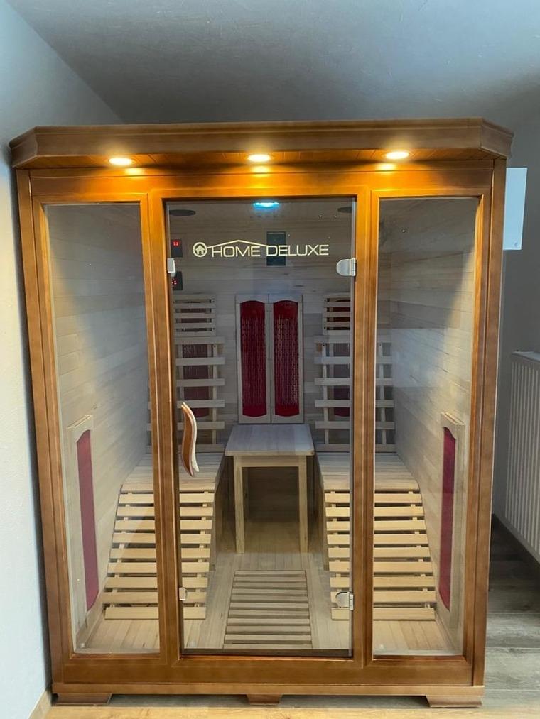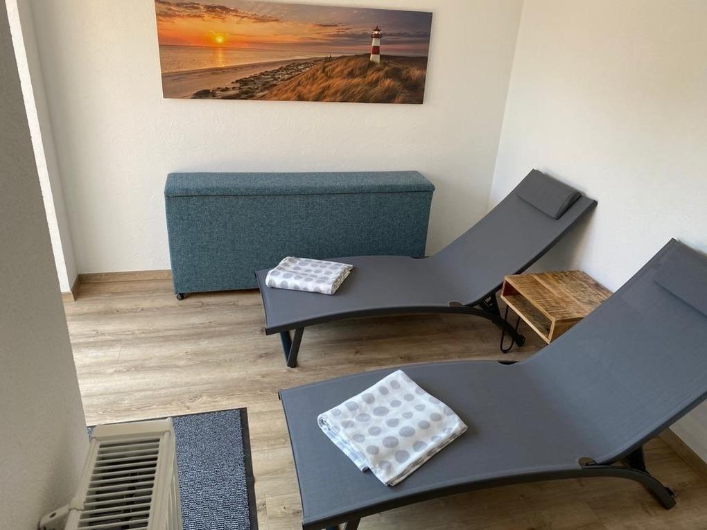 Der Wintergarten ist mit einer Infrarotkabine, zwei Liegen und einem Beistelltisch ausgestattet.