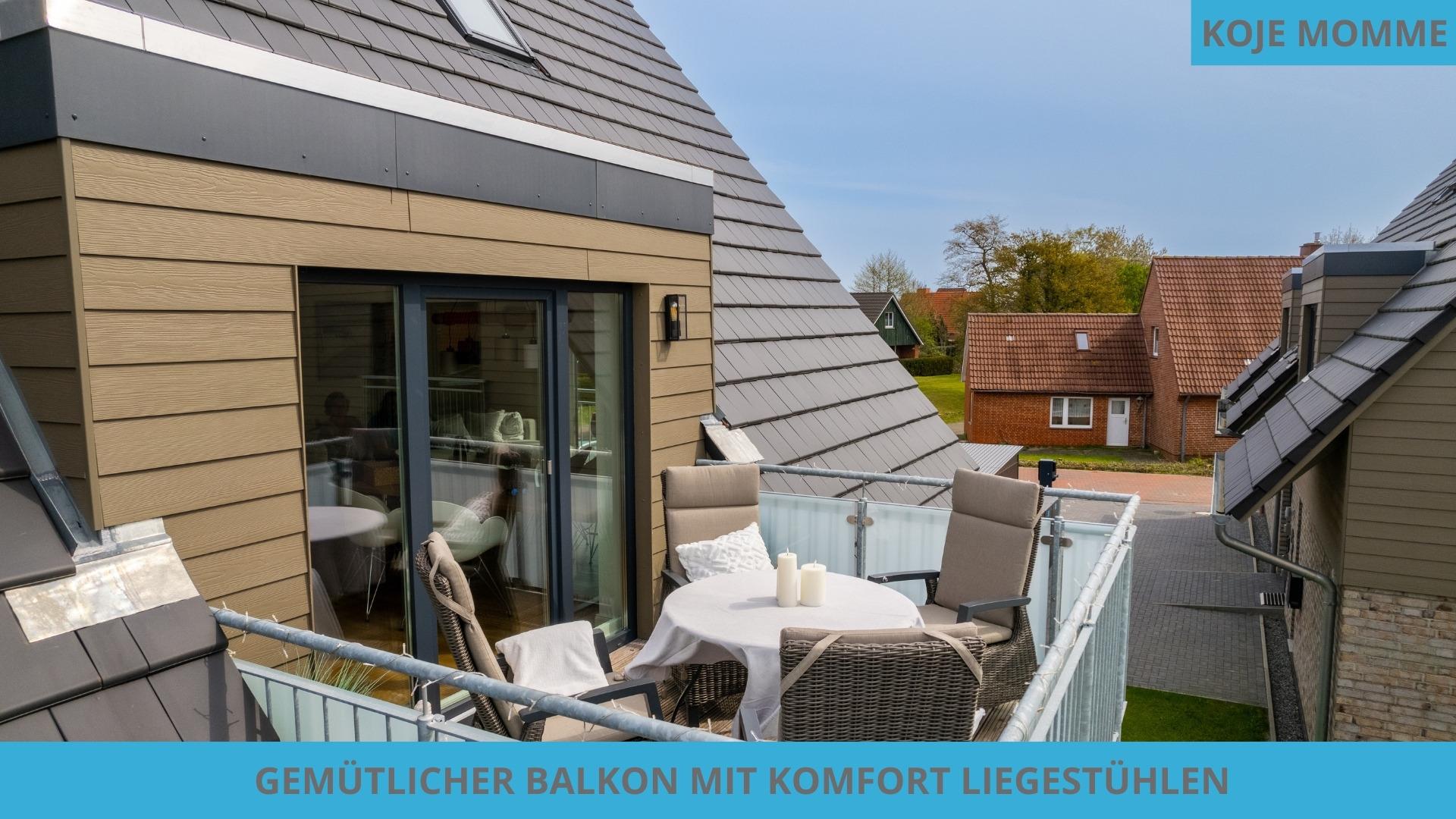 Unser großer Balkon lädt zu einem leckeren Cappuccino oder Espresso aus unserer Espressomaschine mit frisch gemahlenen Bohnen ein und du kannst den Tag mit Blick auf den Sonnenuntergang Revue passieren lassen.