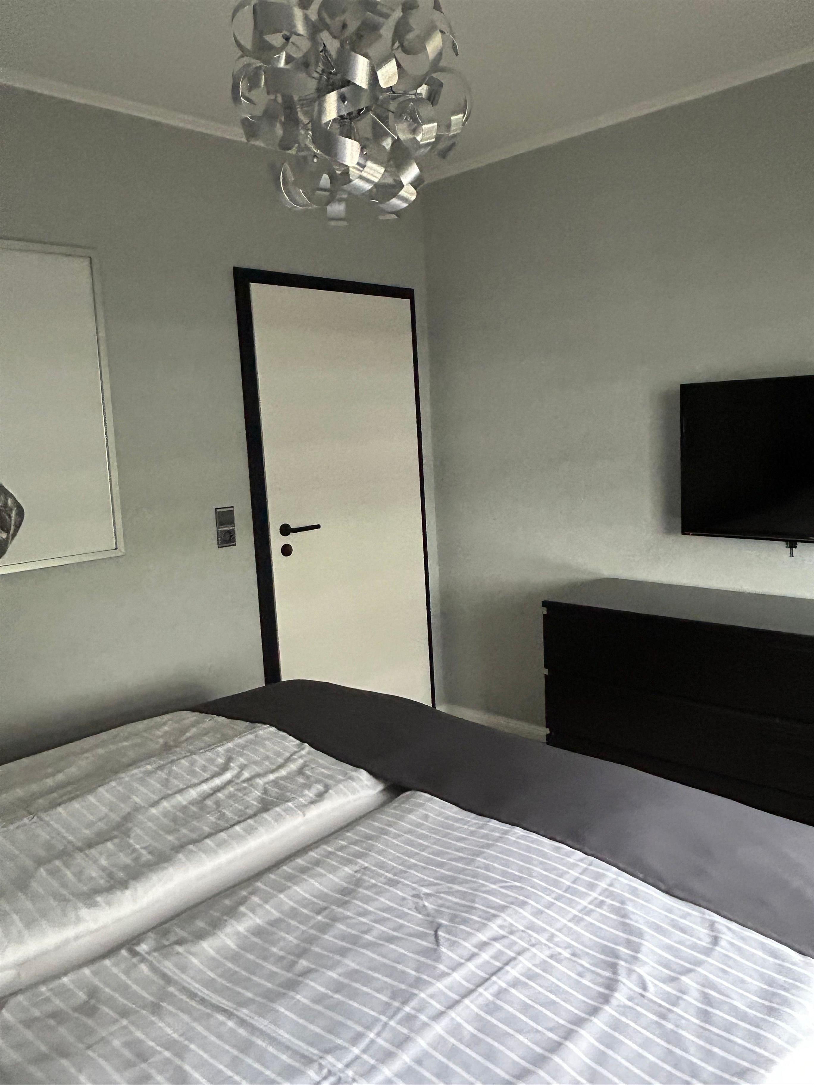 Schlafzimmer: Leder Boxspringbett 180x200, Flat TV