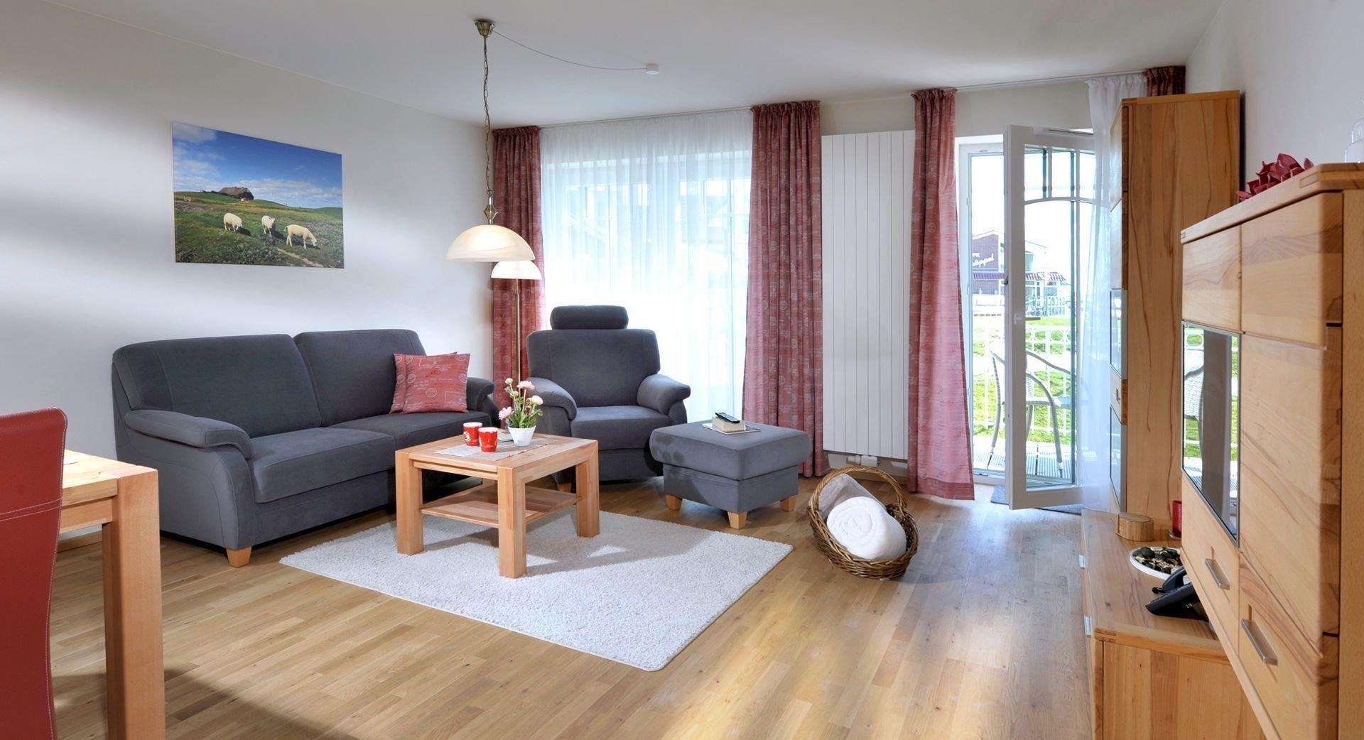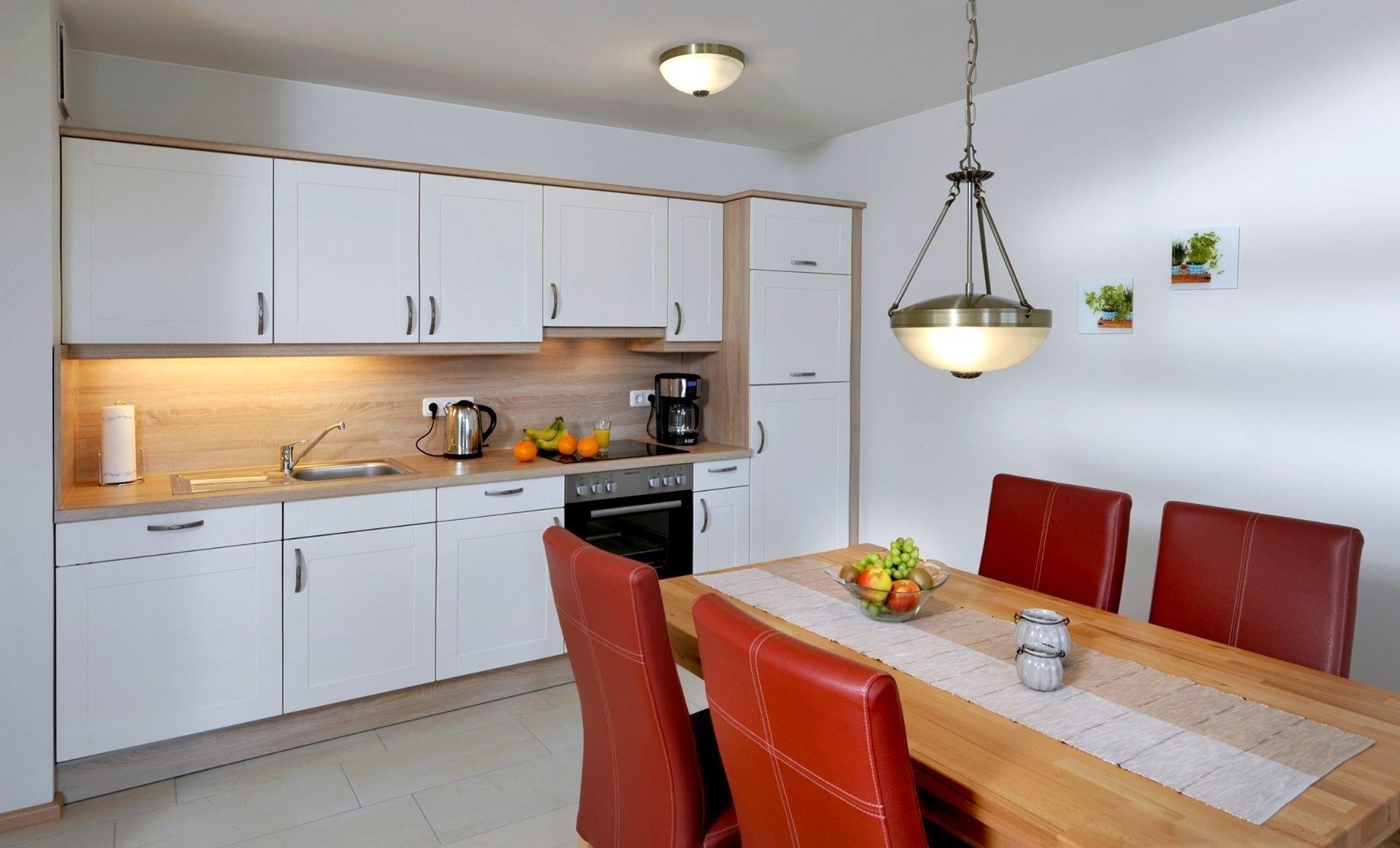 Die Ferienwohnung befindet sich im ersten Stock und ist ideal für zwei Personen. Die großen Fenster in Südausrichtung gewähren lichtdurchflutete Räume und einen schönen Ausblick. Holzfußböden im großzügigen Wohn- und Esszimmer und im Schlafzimmer sowie eine hochwertige Schallisolierung sorgen für eine angenehme und erholsame Atmosphäre. Besonderen Komfort bieten wir mit einer hochwertigen Ausstattung der Ferienwohnung und stufenfreien Zugängen mittels Aufzug und Walk-In-Dusche im Bad. Auf dem möblierten Balkon können Sie bei schönem Wetter bis zum frühen Abend die Sonne genießen. Sie werden sich zu jeder Jahreszeit und bei jedem Wetter bei uns wohl fühlen.