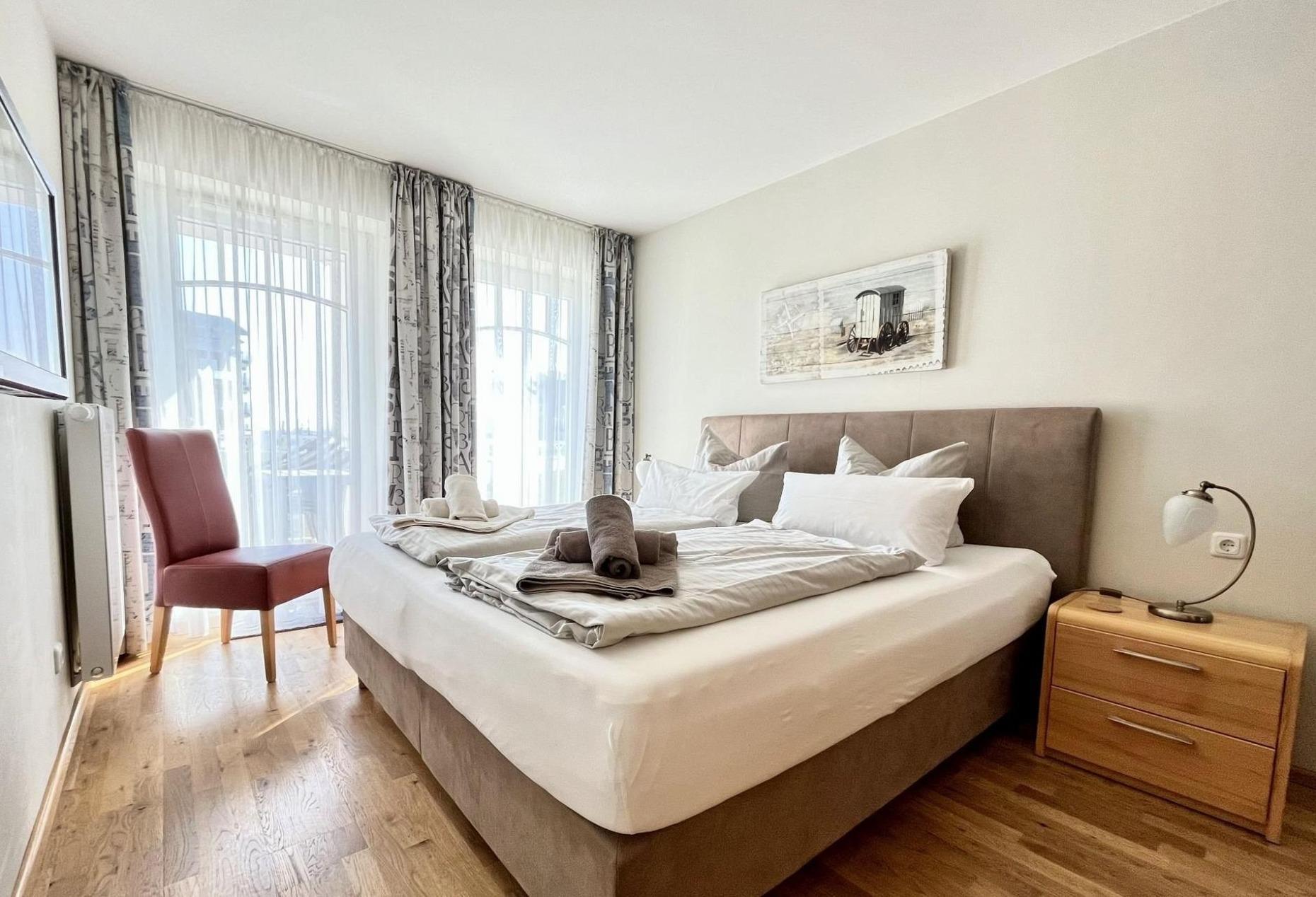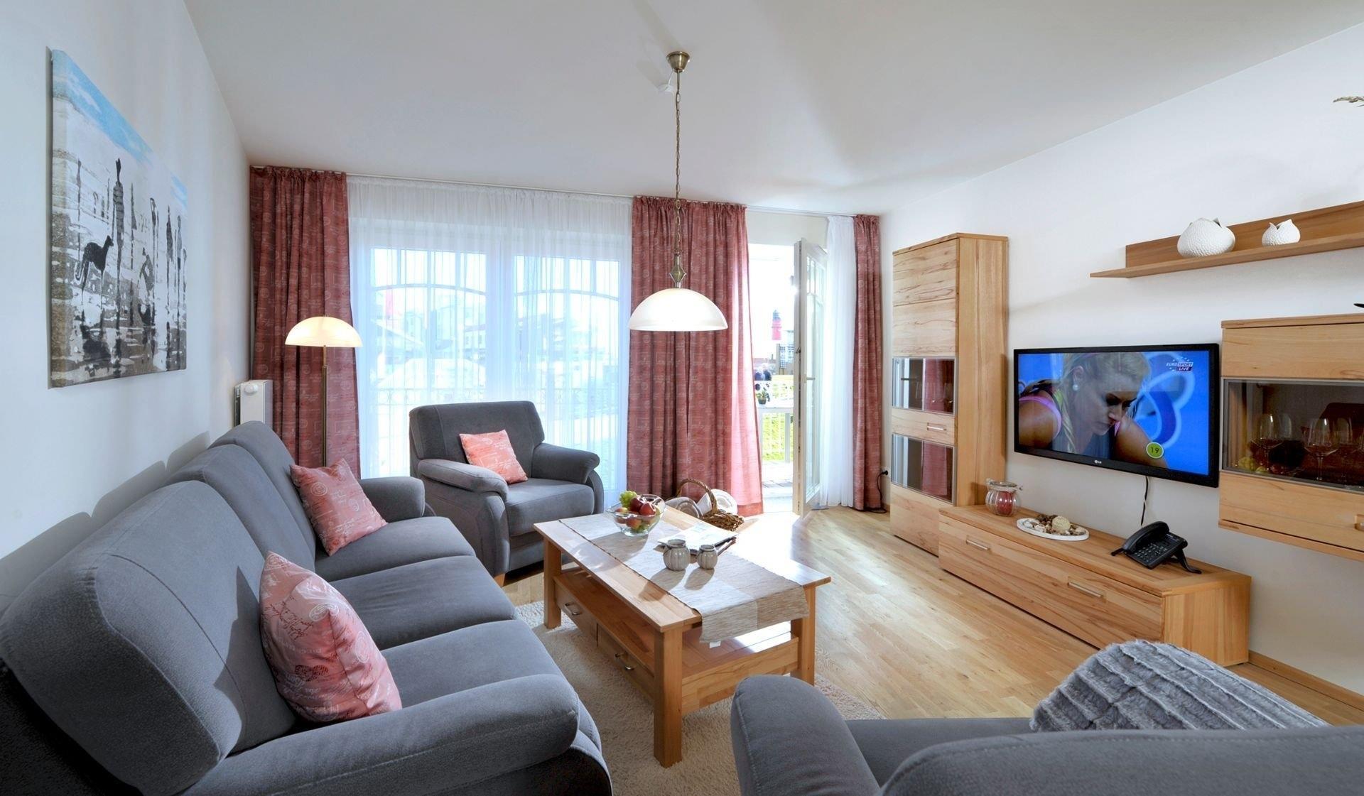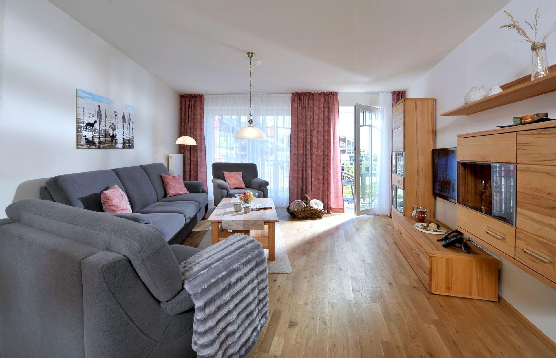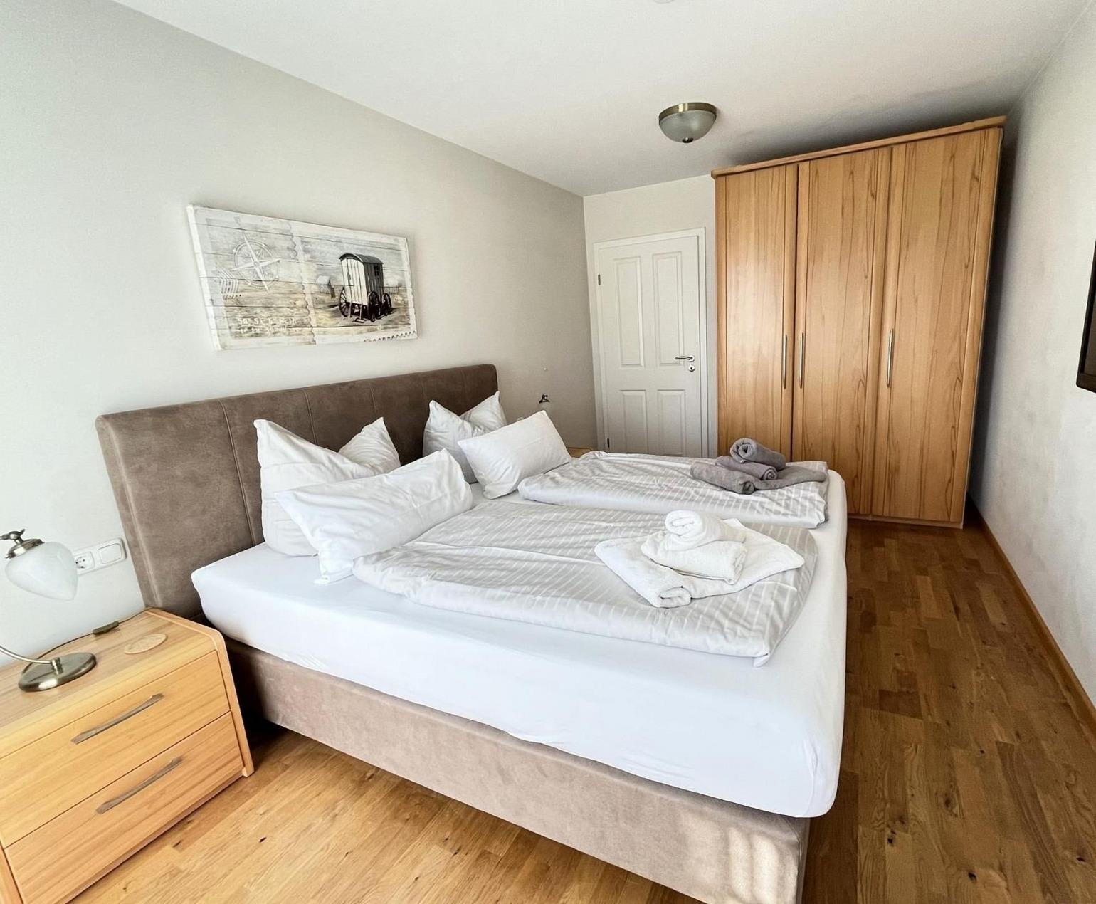 Diese großzügige Ferienwohnung im 1. Stock ist auch für Familien oder Freunde perfekt. Mit großen Fenstern in Südausrichtung bieten wir unseren Gästen lichtdurchflutete Räume mit Blick auf den Museumshafen. Im kombinierten Wohn- und Esszimmer haben Sie viel Platz für gemeinsame Aktivitäten oder Entspannung. Die beiden behaglichen Schlafzimmer mit Doppelbett liegen an entgegengesetzten Enden der Ferienwohnung und bieten damit angenehm getrennte Ruhebereiche. In dem großen Flur im Eingangsbereich lassen sich auch größere Gegenstände bequem abstellen. Holzfußböden im großzügigen Wohnraum und in den Schlafräumen sowie eine hochwertige Schallisolierung sorgen für eine angenehme und erholsame Atmosphäre. Ganz besonderen Komfort bieten wir mit einer hochwertigen Ausstattung der Ferienwohnung und stufenfreien Zugängen, insbesondere mittels Aufzug und praktischer Walk-In-Dusche im Bad. Auf dem möblierten Balkon können Sie bei schönem Wetter bis zum frühen Abend die Sonne genießen und das bunte Treiben in der Fußgängerzone und um den Museumshafen beobachten. Sie werden sich zu jeder Jahreszeit und bei jedem Wetter bei uns wohl fühlen.