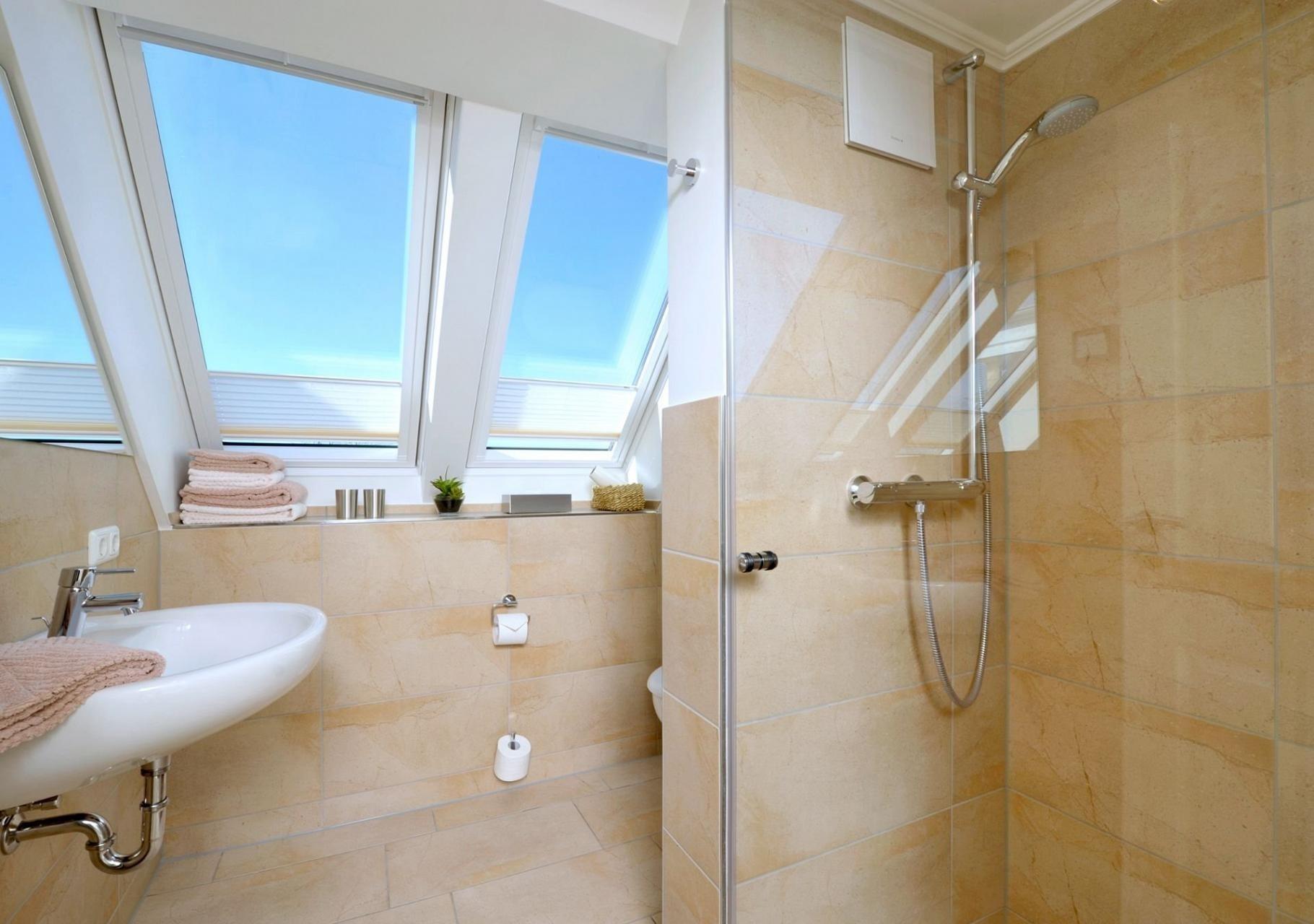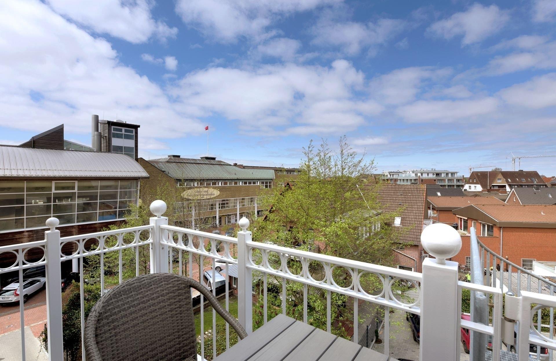 Diese kleine aber dennoch sehr gemütliche Ferienwohnung im Dachgeschoss des Hauses bietet Platz für maximal zwei Personen. Die hochwertige Schallisolierung der Räume sorgt für angenehme Ruhe, die Sie auf bequemen Relax-Sesseln genießen können. Daneben sorgen Holzfußböden im Wohn- und Schlafzimmer für eine freundliche und erholsame Atmosphäre. Durch die vielen großen Dachfenster sind alle Räume lichtdurchflutet. Besonderen Komfort bieten wir mit einer hochwertigen Ausstattung der Ferienwohnung und stufenfreien Zugängen, insbesondere mittels Aufzug. Auf dem möblierten Balkon haben Sie einen schönen Blick über Büsum und können bei schönem Wetter den Sonnenschein ab dem frühen Nachmittag bis in den Abend hinein genießen. Sie werden sich bei uns zu jeder Jahreszeit und bei jedem Wetter wohl fühlen.