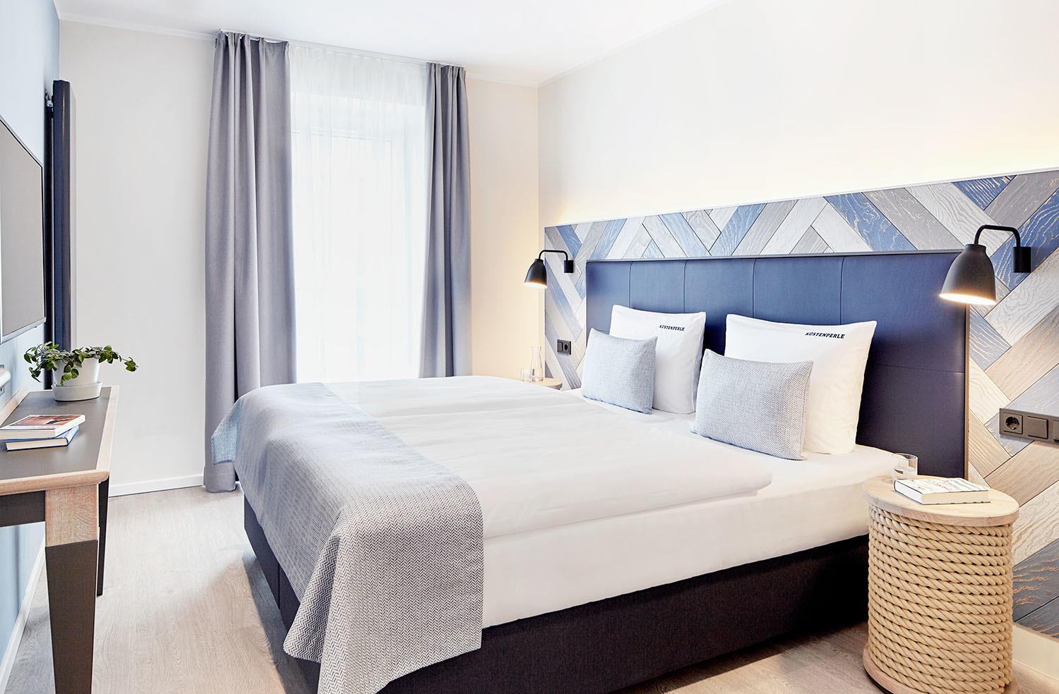 Die zwischen 62 und 84,5 m² großen Ferienwohnungen bieten Platz für 2 bis 4 Personen mit einem oder zwei Schlafzimmern. Herzstück ist jeweils ein großzügiger Wohnraum mit Wohnzimmer und offener Küche sowie einem gemütlichen Essbereich. Auf Balkon oder Terrasse können Sie die frische Seeluft mit und ohne Meerblick genießen.