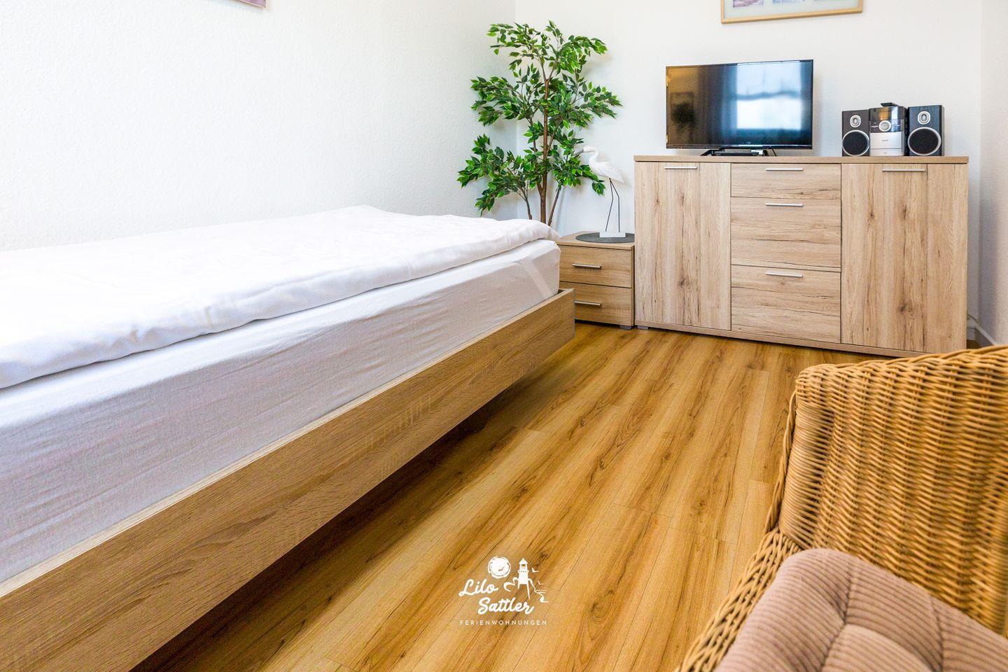 Die gemütlich und komfortabel ausgestattete Ferienwohnung hat mit 2 Schlafzimmern die nötige Wohnqualität für 3 Personen. Für Garderobe und Wäsche ist ausreichend Platz vorhanden. Vorhandene Spiele und Bücher bieten ein tolles "Schlechtwetterprogramm".