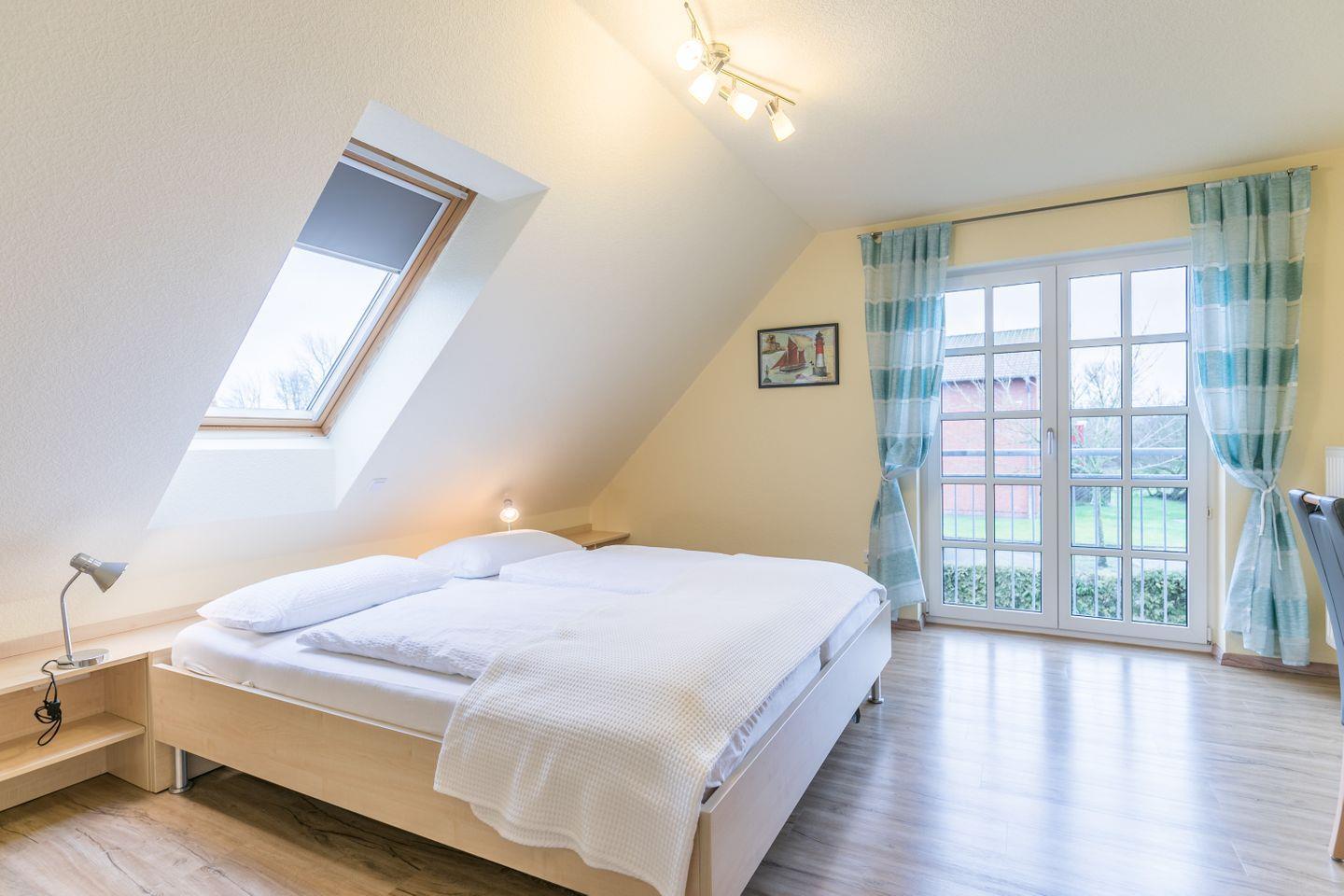 Schlafzimmer 1: Doppelbett mit getrennten Matratzen (je 200cm x 90 cm), Kleiderschrank, Außenjalousie, Flachbild-TV, verstellbare Lattenroste (Kopf- und Fußteil), Kleiderschrank 3-türig