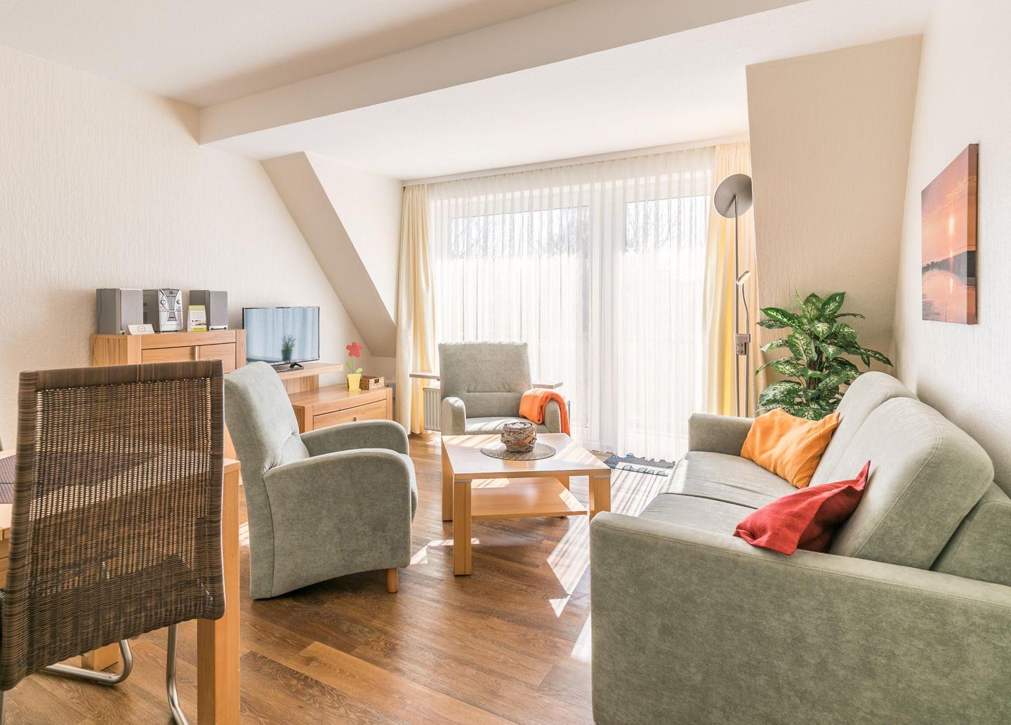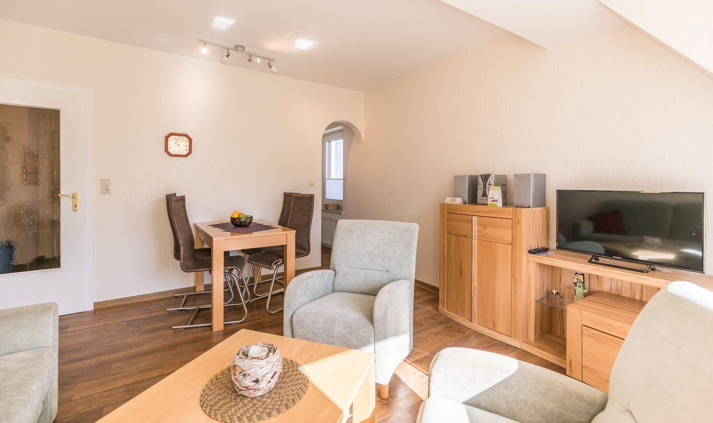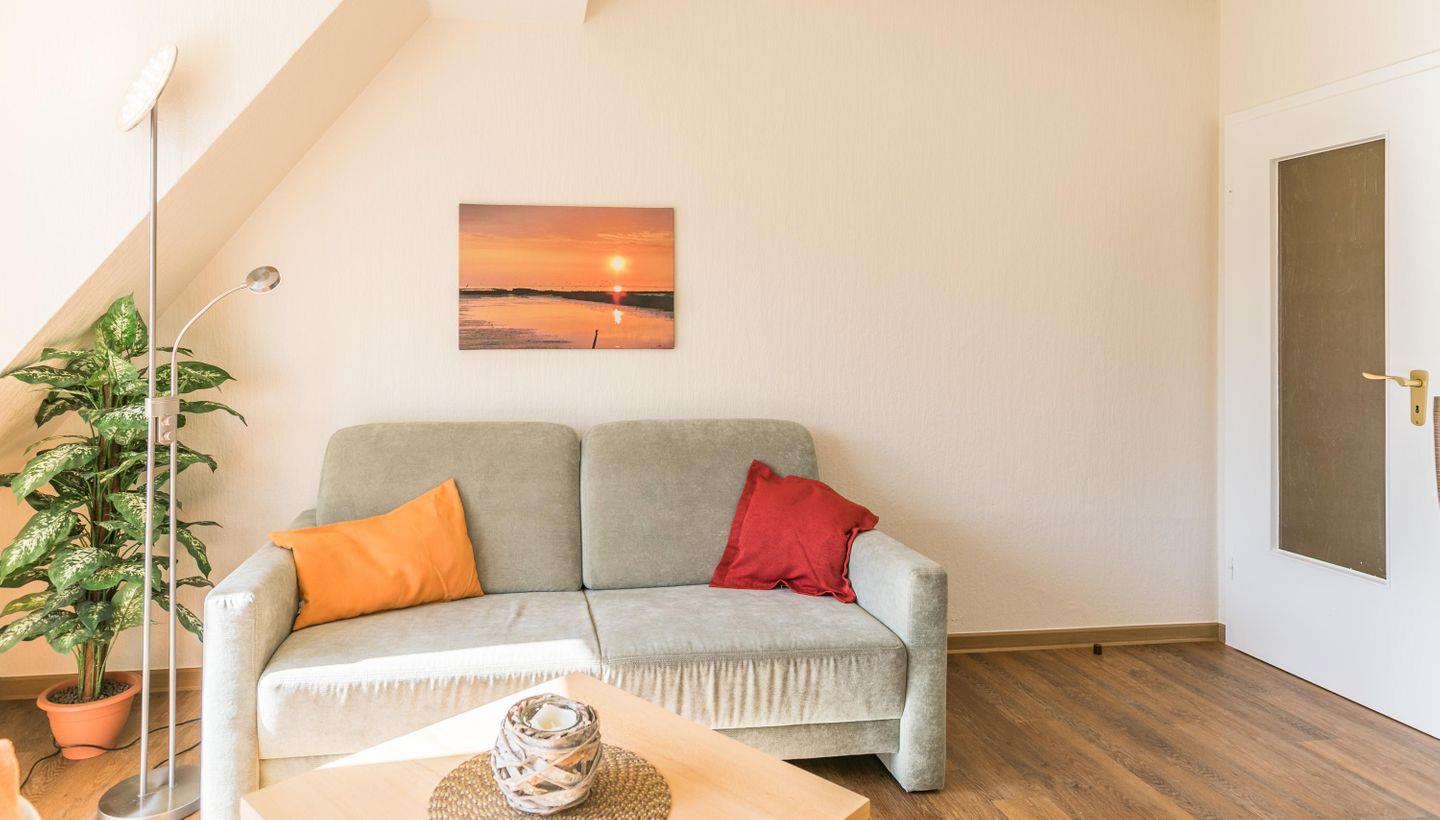 Eine gemütliche Einrichtung verspricht einen angenehmen Urlaub in der Ferienwohnung Abendrot 1 - kostenloses W-LAN inklusive.