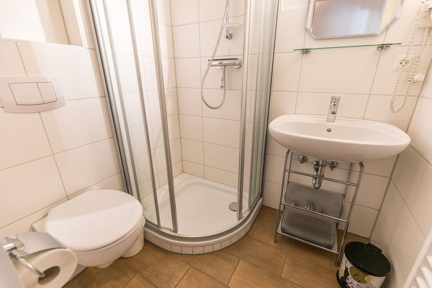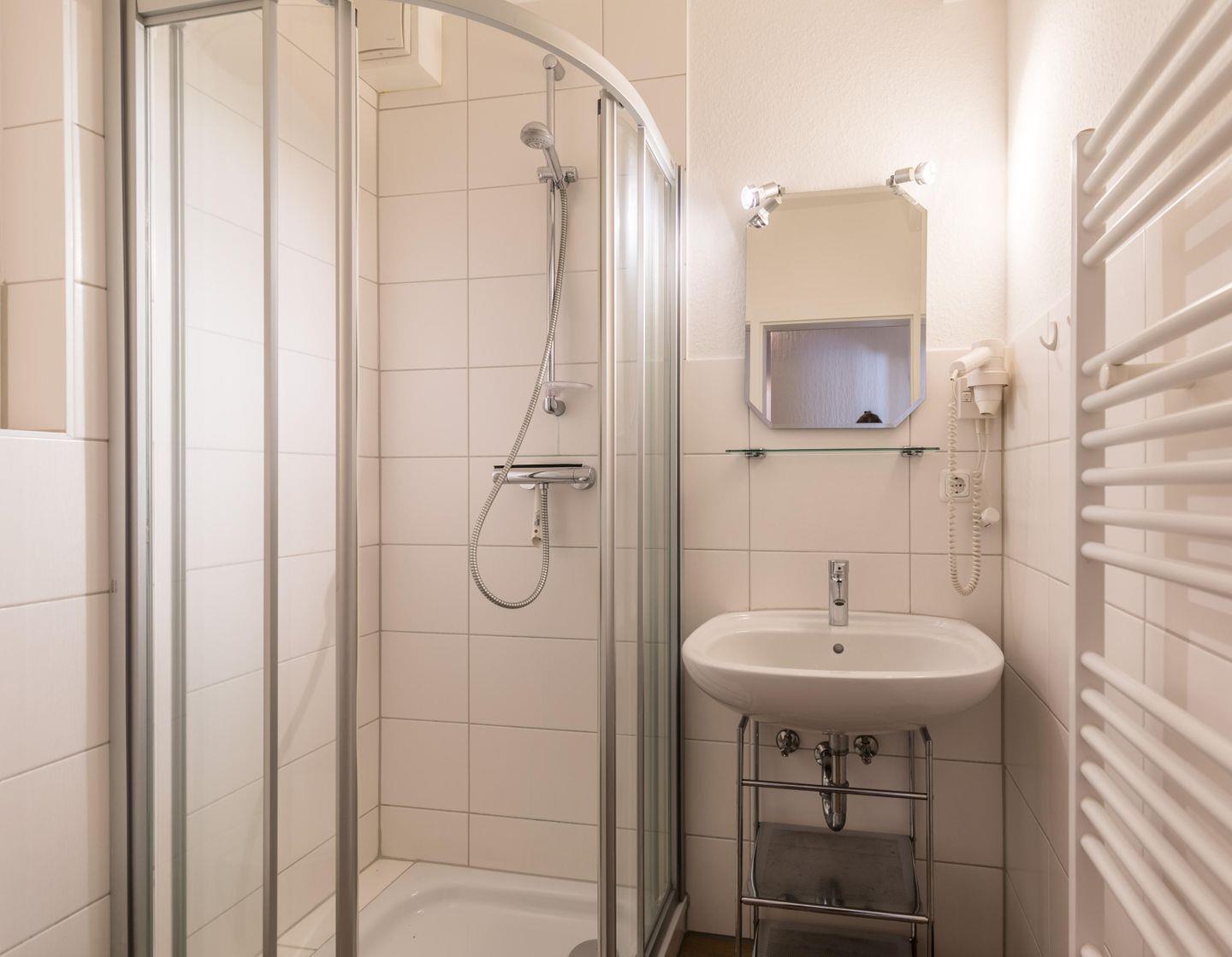 Dusche, WC, Waschbecken Handtuchheizung, Fön, Lüfter