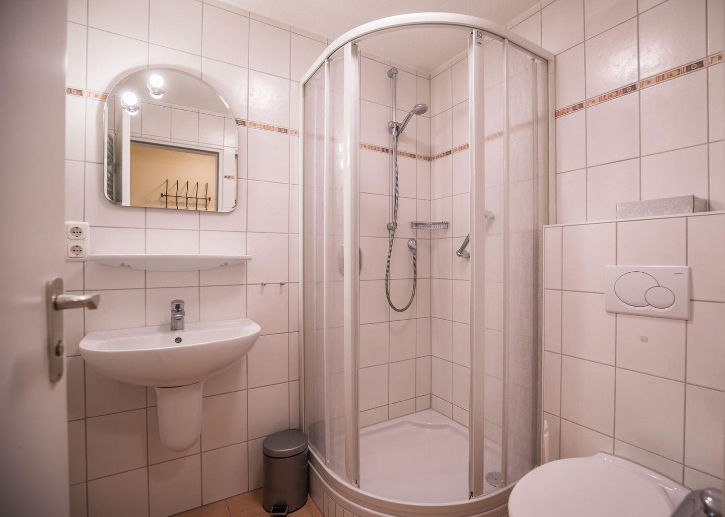 Dusche, WC, Waschbecken, Handtuchwärmer