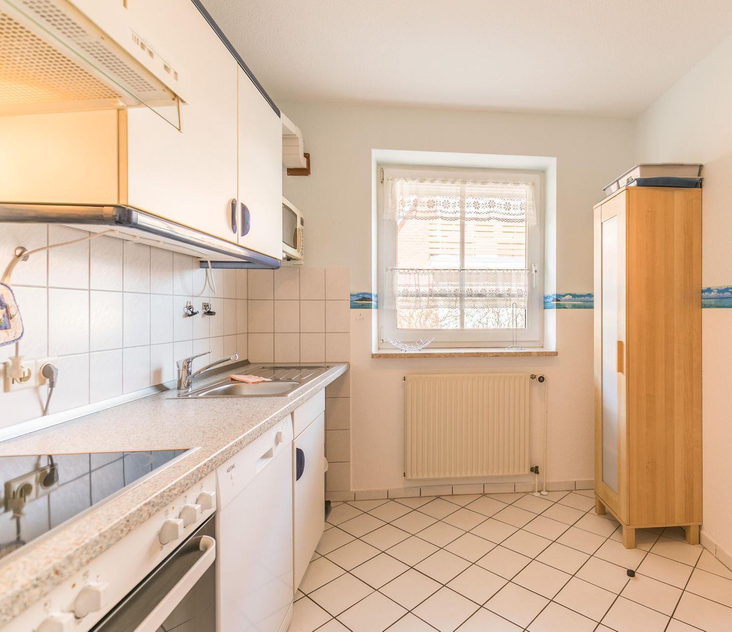 Einbauküche, Cerankochfeld, Dunstabzug, Geschirrspüler, Mikrowelle, Tisch, 2 Stühle