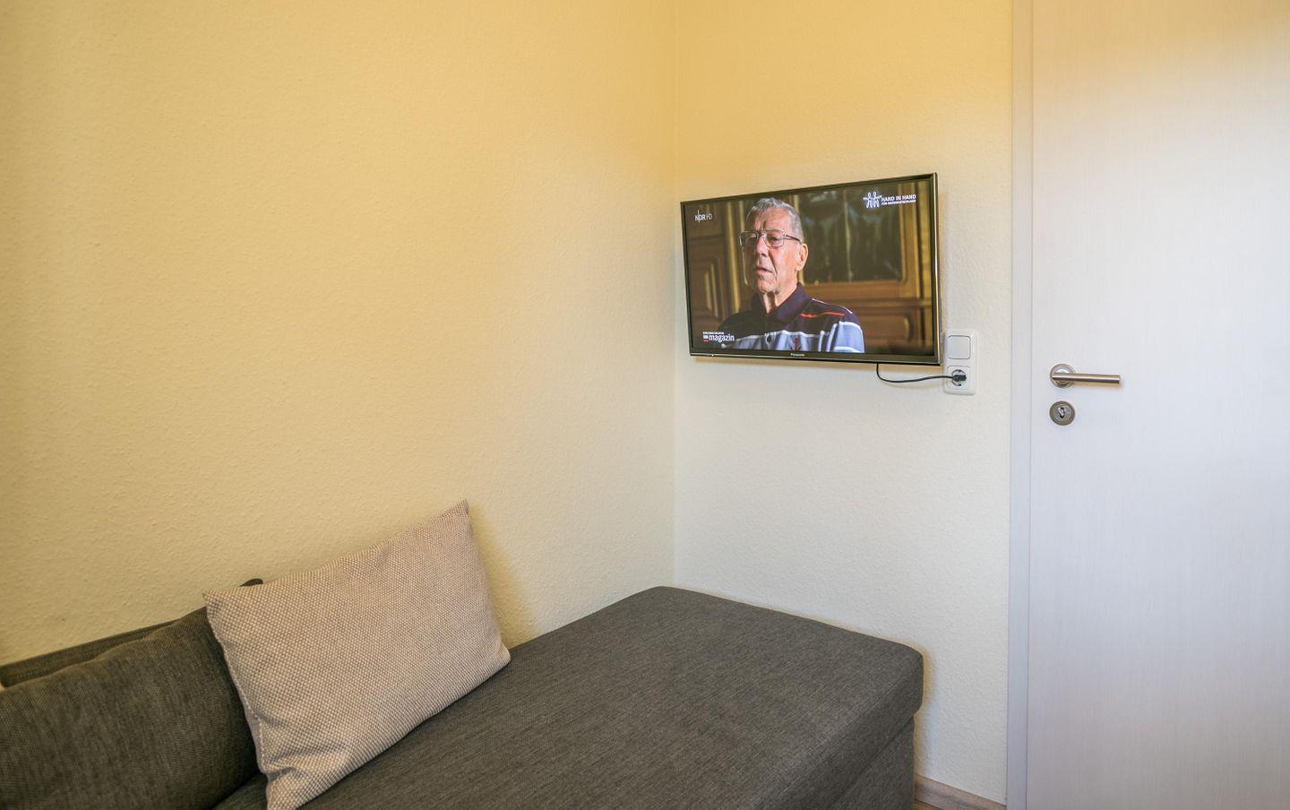 Sofa, 2 Sessel, Hocker, Esstisch, Stühle, Flachbild-TV, Radio, Fußbodenheizung