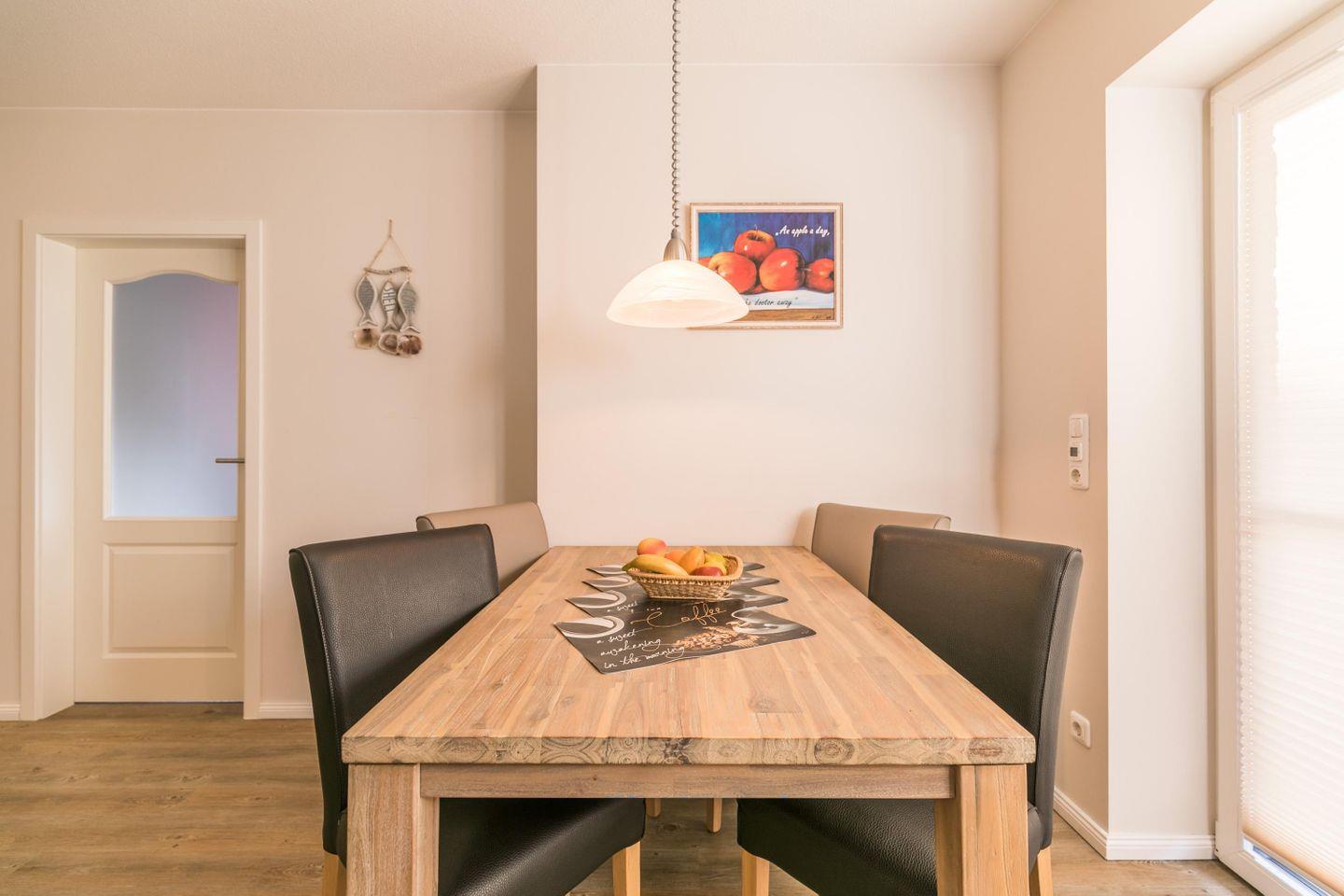 Die Küche ist mit allem eingerichtet, was Sie zum Beispiel zum Kochen benötigen. Der Essbereich ist für bis 4 Personen ausgelegt.