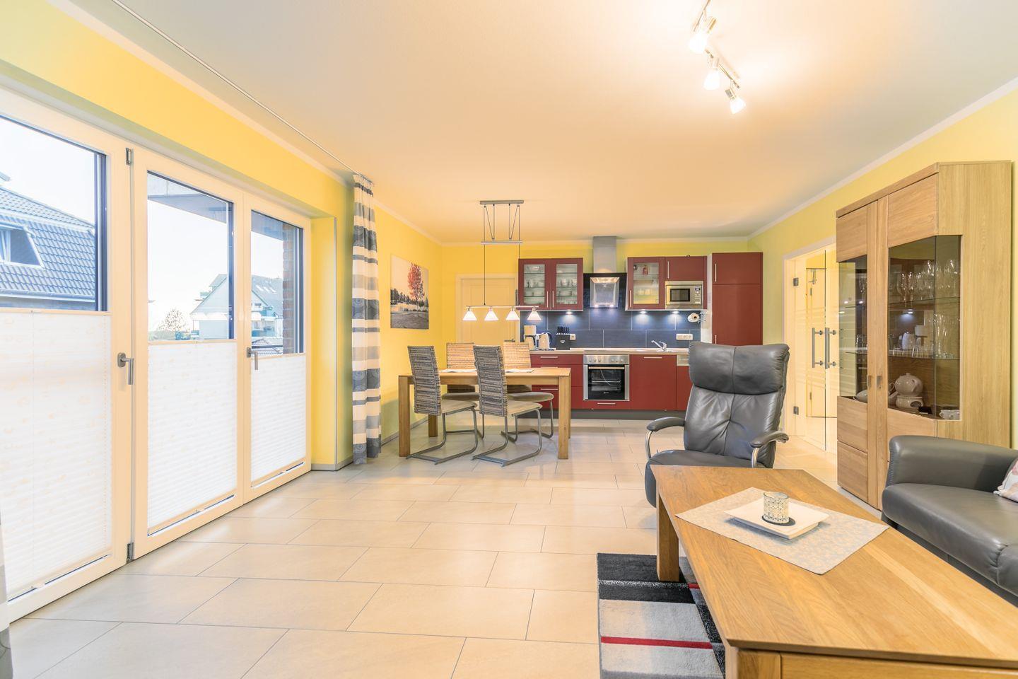 Im großen Wohnbereich ist die voll ausgestattete Küchenzeile angeschlossen.