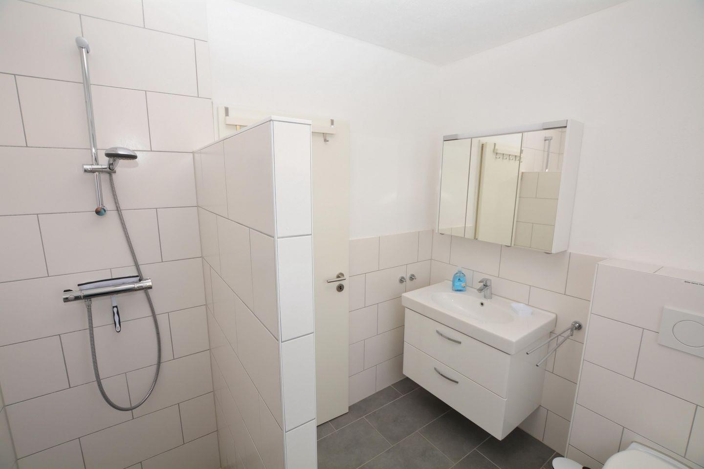 Dusche, WV, Spiegelschrank, Fenster, Kosmetikspiegel, Handtuchwärmer, Duschhocker, Föhn