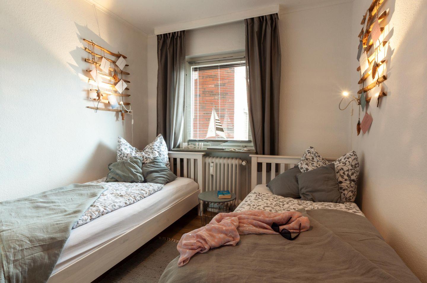 Im gemütlichen Schlafzimmer stehen 2 Einzelbetten und ein großer Schrank mit viel Stauraum zur Verfügung. Die Betten sind bei Ihrer Anreise - ohne Aufpreis - bereits bezogen!