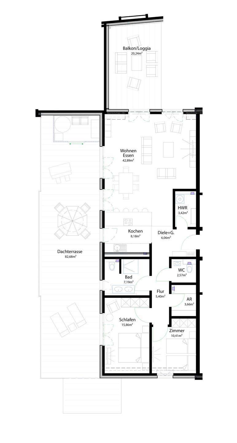 2 möblierte Dachterrassen mit extra Schuppen und extragroßen Sonnenschirmen (Saisonabhängig), W-Lan, 1 kostenloser Tiefgaragenstellplatz (2m Einfahrtshöhe), Garderobe, gemeinschaftlicher, abschließbarer Fahrradabstellraum, Fahrstuhl, Abstellraum mit Waschmaschine und Trockner, Wäsche optional dazu buchbar, Wohnungstür und alle Zimmertüren 0,95m breit