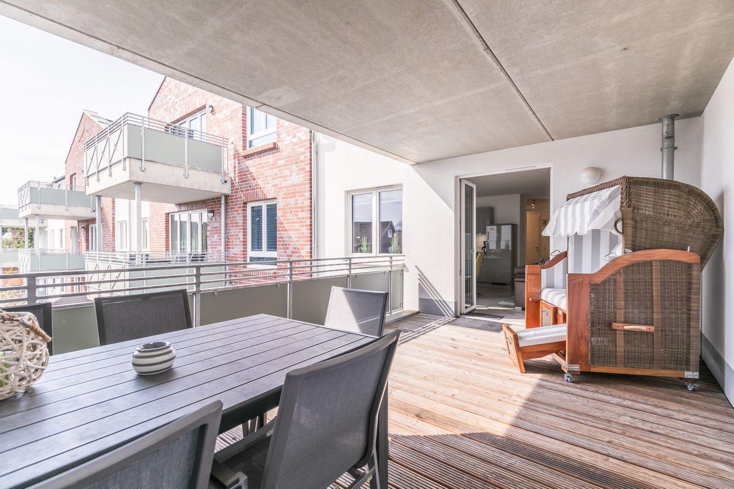 Ein unbestrittenes Highlight der Wohnung ist jedoch die komplett überdachte Loggia (20m²). Ganz egal ob es regnet oder nicht, können Sie hier entspannte Stunden im Strandkorb verbringen.