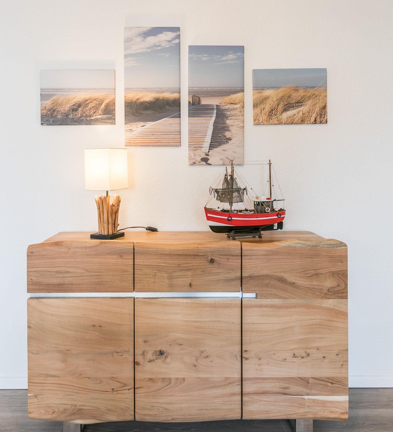 Ledersofa, Tisch, Zugang zum Balkon, Kommode, Esstisch + Stühle, DAB+-Radio mit Internet und Bluetooth-Funktion