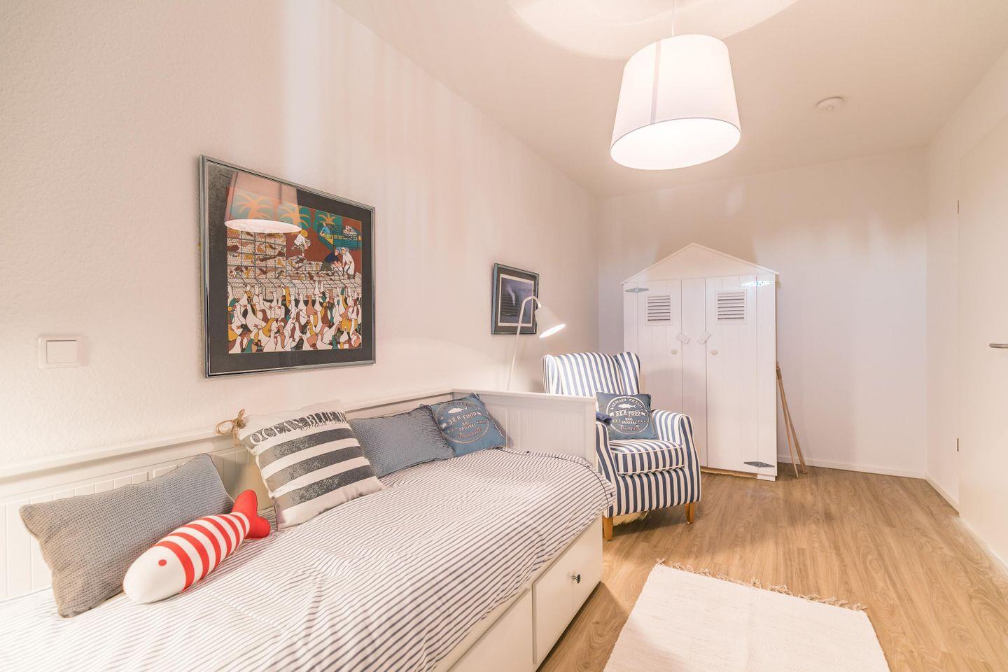 Im geräumigen Hauptschlafzimmer hat zusätzlich ein Kinderreisebett ohne Probleme Platz. Im zweiten Schlafzimmer kann das Tagesbett zu einem Doppelbett umfunktioniert werden, ein Erwachsener oder zwei Kinder können es sich dann hier so richtig gemütlich machen.