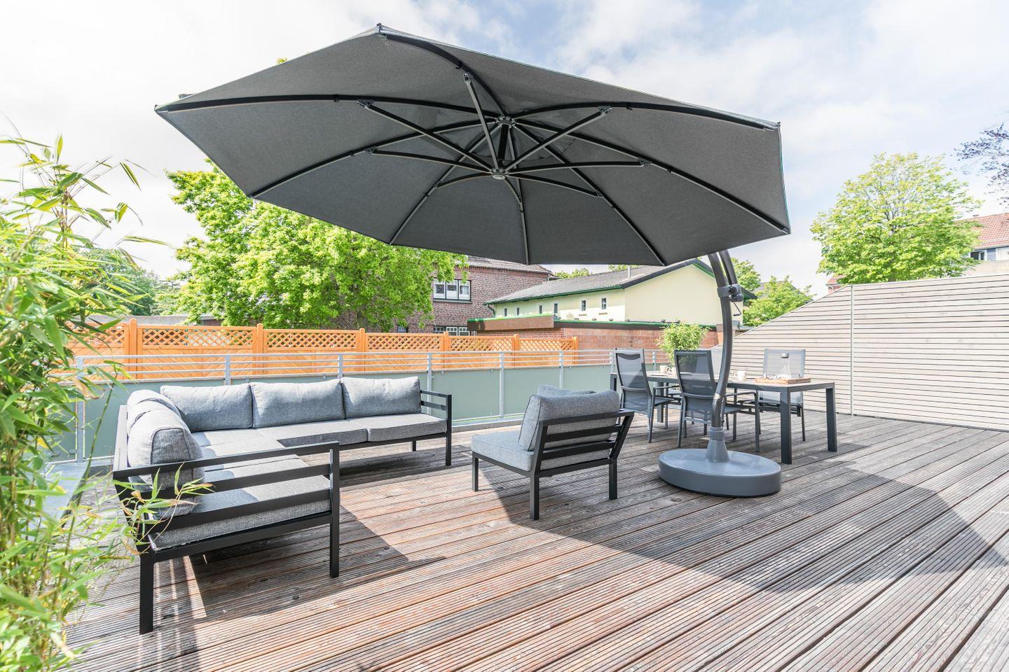 Ein großes Highlight dieser lichtdurchfluteten Traumferienwohnung sind die beiden Terrassen. Auf der kleinen Süd-Ost-Terrasse können Sie Ihr Frühstück in der Sonne einnehmen, später geht es dann zum Sonnenbaden auf die opulente Süd-West-Terrasse, mit einer Größe von über 50m²! Lassen Sie den Tag in Lounge-Möbeln oder im Strandkorb gemütlich ausklingen...