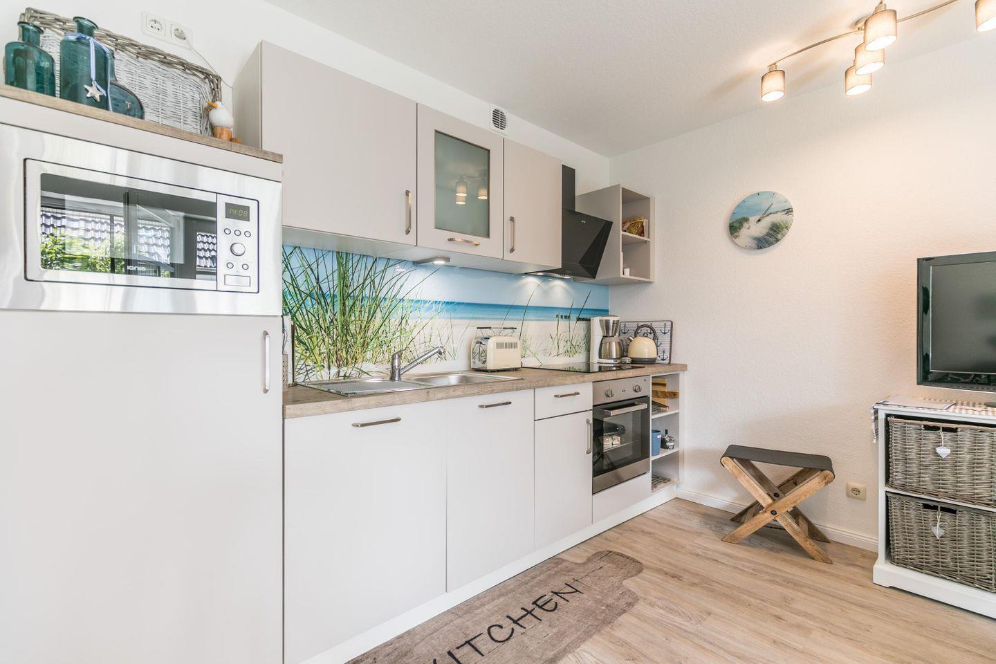 mit Ceranfeld, Backofen, Mikrowelle, Geschirrspüler, Kühlschrank mit Gefrierfach, Wasserkocher, Toaster, Kaffeemaschine, Senseo Pad Maschine, Eierkocher