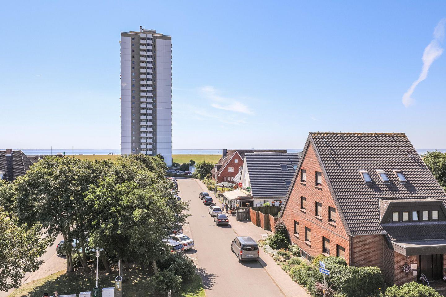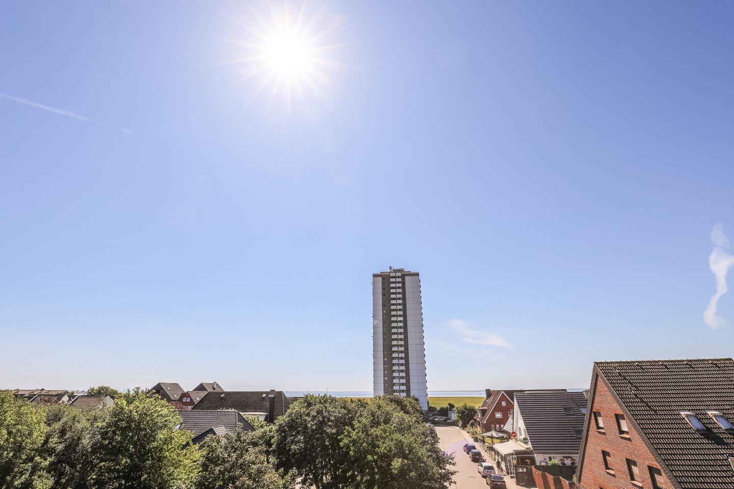 Die Ferienwohnung Luv33 mit Meerblick liegt in direkter Lage zur Familienlagune, dem Sandstrand von Büsum. Der Ausblick über die Dächer hinweg Richtung Nordsee und Perlebucht kann sich wahrlich sehen lassen...