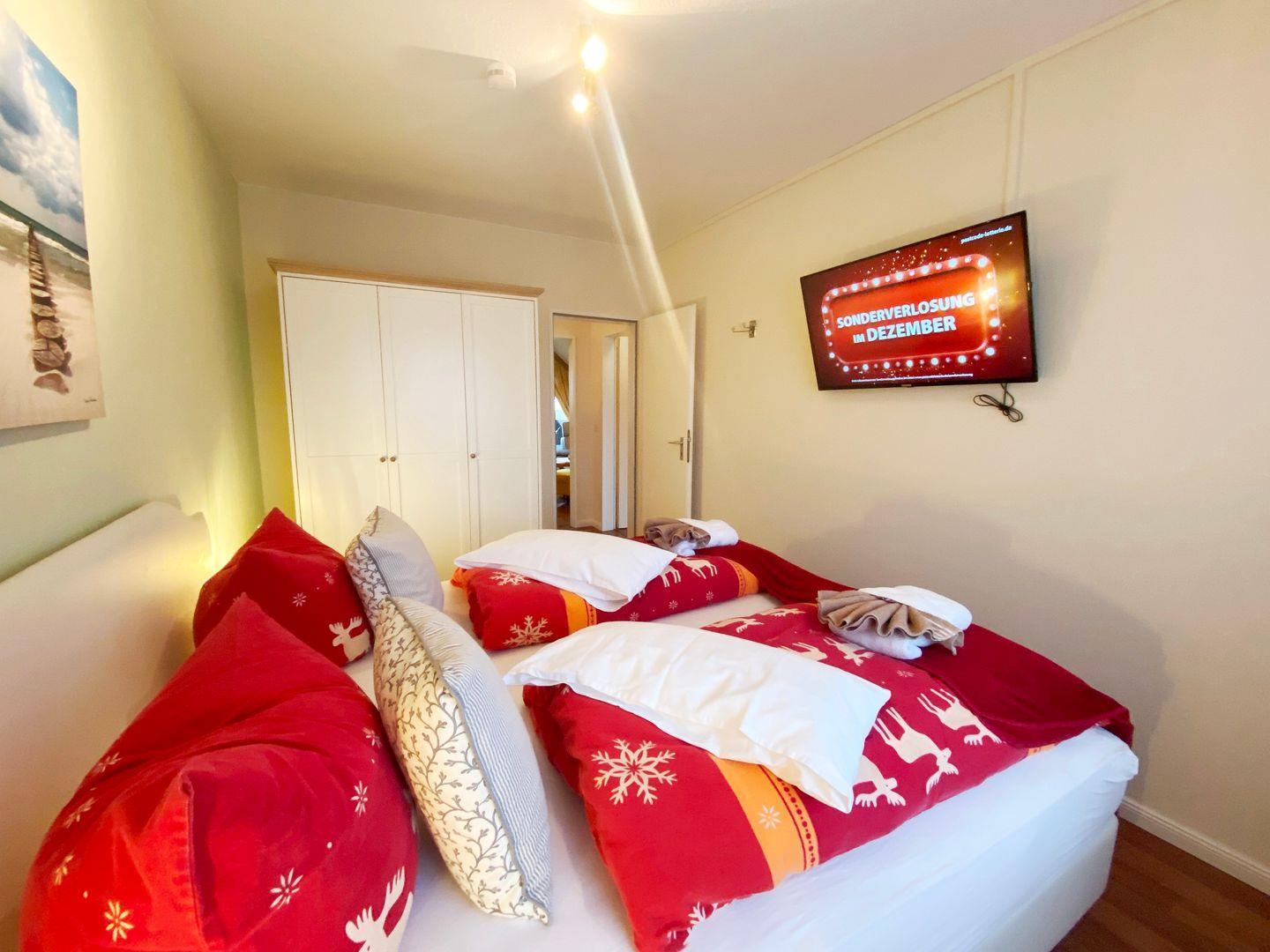 Die Wohnung ist ausgestattet mit zwei separaten Schlafzimmern. Eines mit einem komfortablen Doppelbett und das andere mit zwei Einzelbetten. In einem dieser Schlafzimmer befindet sich ein zweiter Fernseher.