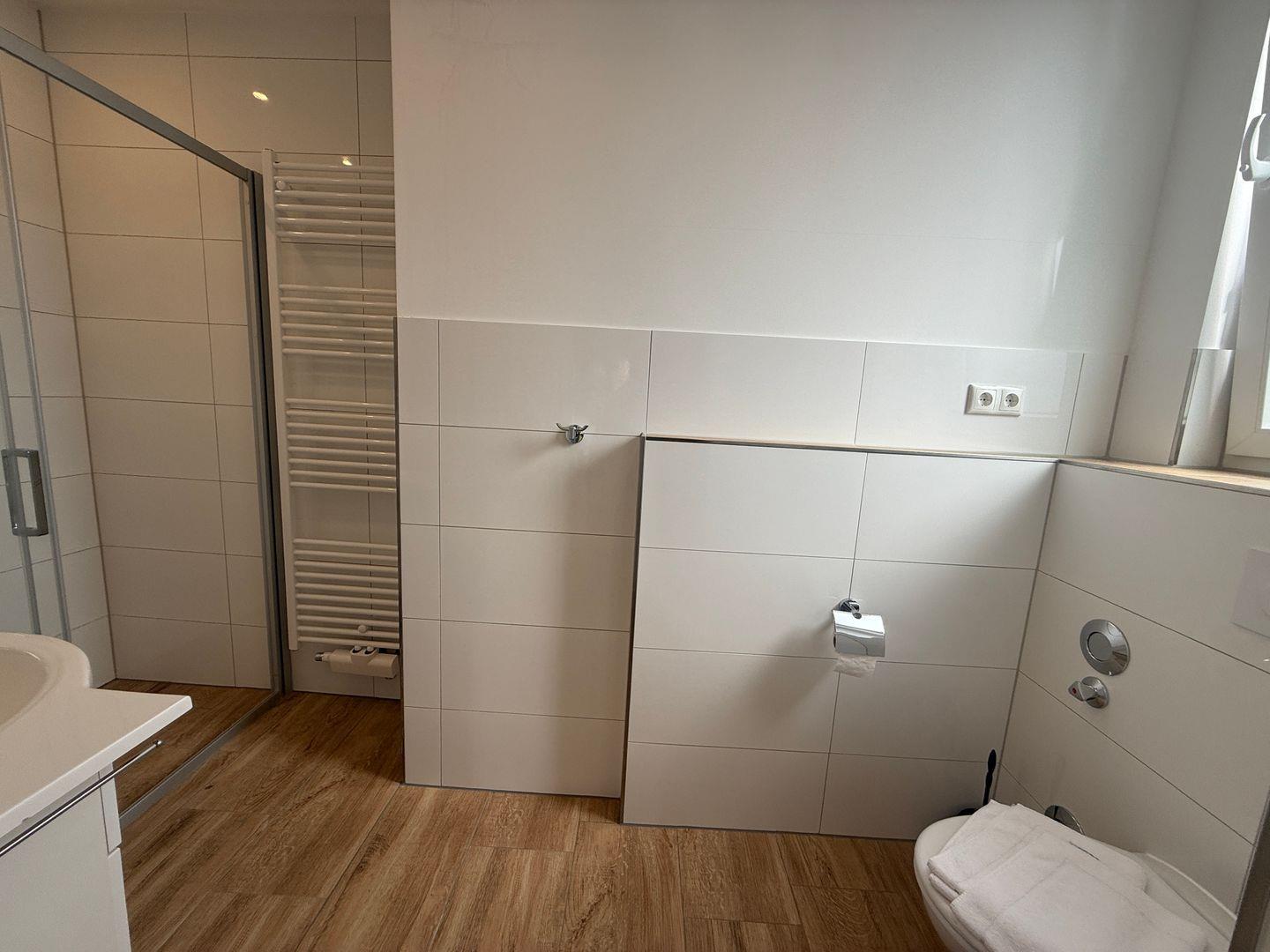 Die neue Küche hat alles für den täglichen Gebrauch, auch einen Geschirrspüler. Das helle Bad ist geräumig und mit einem niedrigen Duscheinstieg. Die Wohnung liegt im Parterre mit Terrasse. Da die Wohnung für Allergiker geeignet ist, sind Haustiere leider nicht gestattet.
