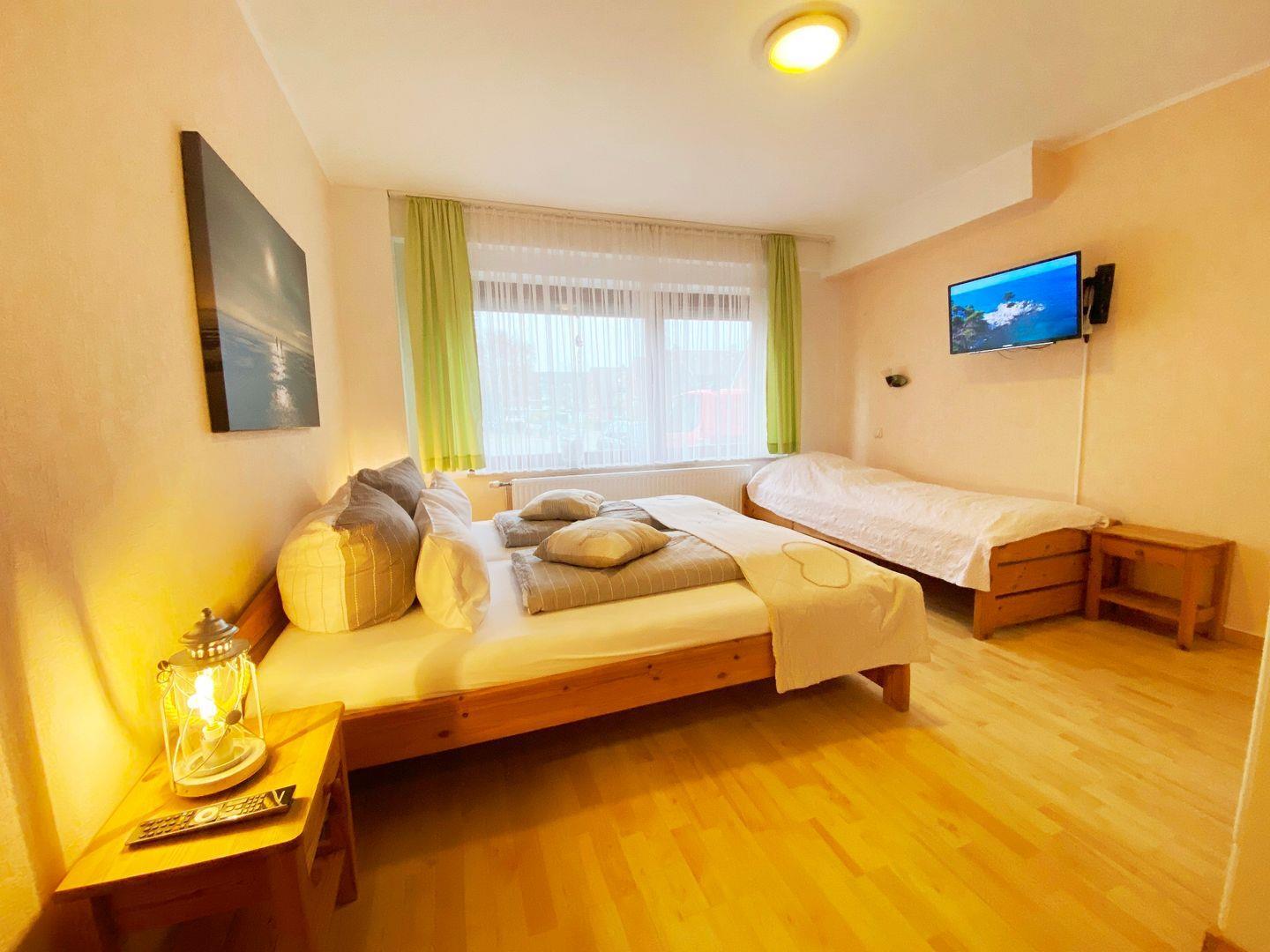 3-Raum-Wohnung für bis zu 5 Pers., 2 Schlafzimmer (2x Doppelbett + 1Einzelbett extra in einem der Schlafzimmer), Parterre mit Terrasse, Wlan, 1 Duschbad