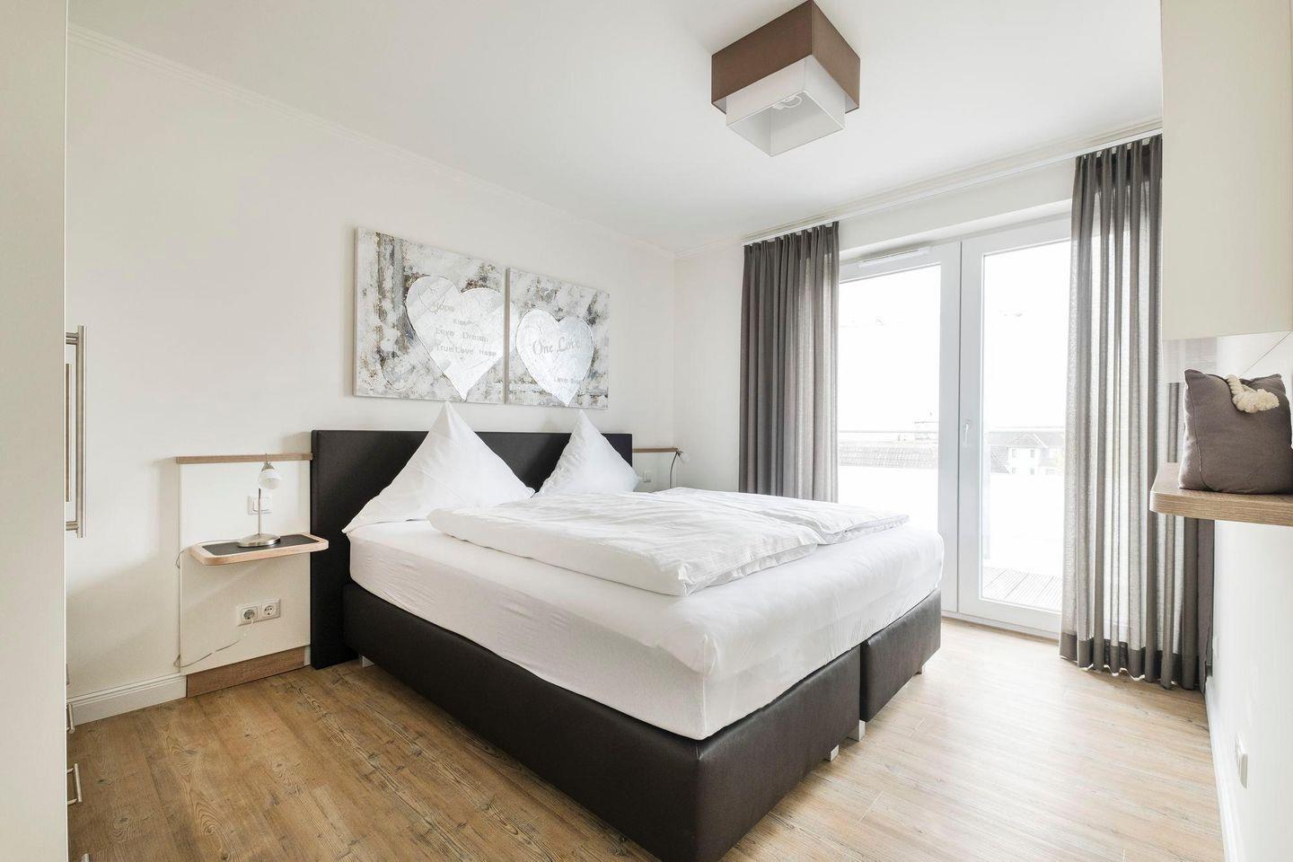 Die Ferienwohnung 4.3 ist eine moderne, geschmackvolle 3-Raum-Wohnung mit Balkon und Meerblick. Die Küche ist komplett separat. Der Essbereich ist direkt im Wohnbereich integriert. Das Bad verfügt über eine ebenerdige Dusche, WC, Handtuchtrockner und Haar-Föhn. Sowohl vom Wohnbereich als auch von den Schlafzimmern gelangen Sie direkt auf den Balkon. Die Wohnung verfügt auch über ein Gäste-WC und eine eigene Sauna.