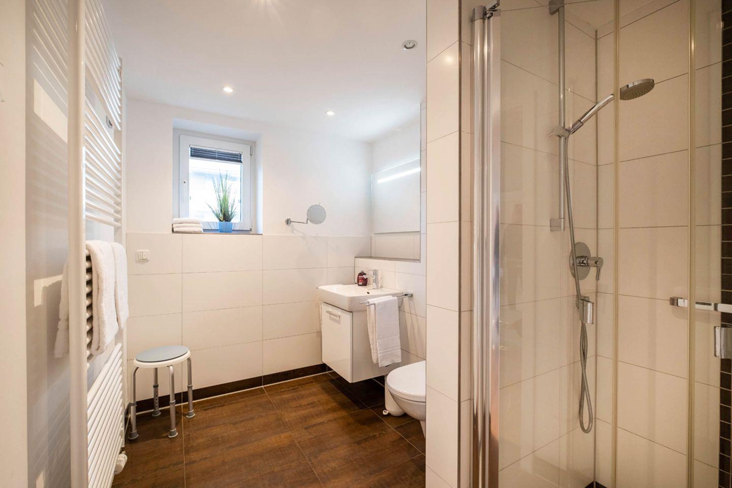 Sanitär: Duschbad mit ebenerdiger Dusche,1 x WC, Haar-Föhn, Kosmetikspiegel