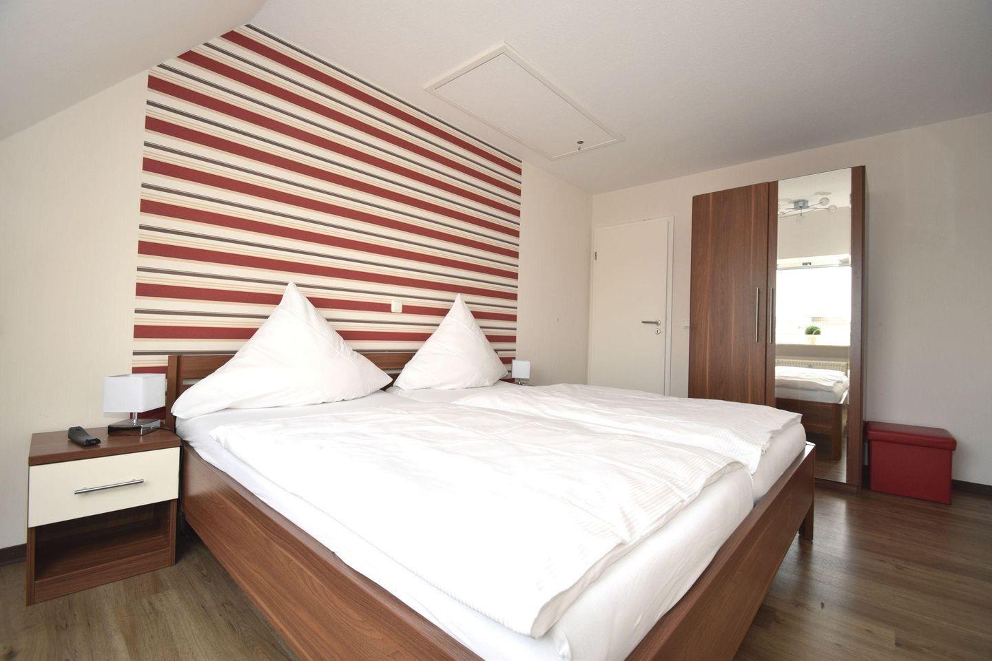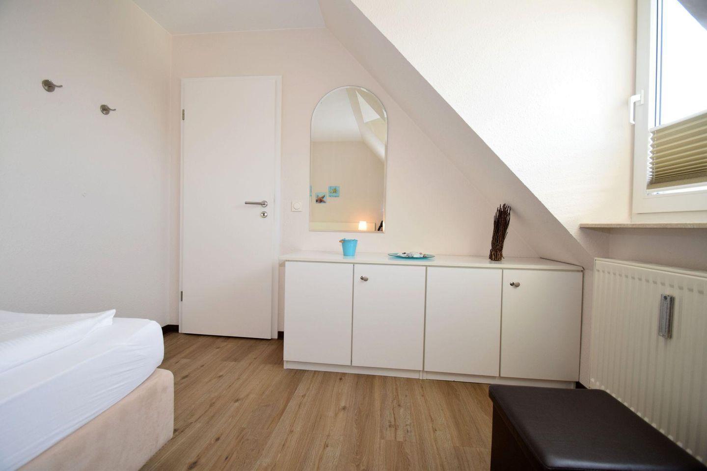Im oberen Teil der Wohnung (über eine Treppe zu erreichen) befinden sich noch 2 Schlafzimmer und ein zusätzliches Duschbad mit WC