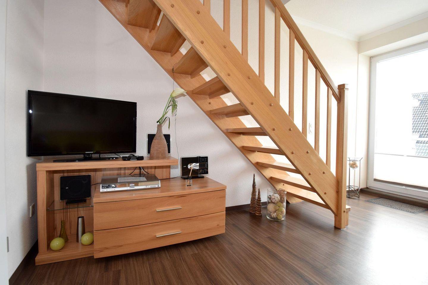 Im unteren Teil der Wohnung erwartet Sie : 1 Wohnzimmer mit Essbereich, eine kleine Küchenzeile, 1 Schlafzimmer mit 2 Einzelbetten und 1 Duschbad.