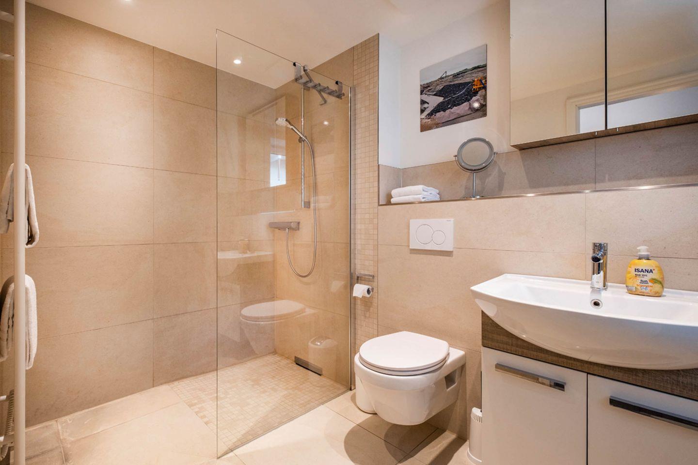 Sanitär: Duschbad mit ebenerdiger Dusche, Haar-Föhn, Kosmetikspiegel