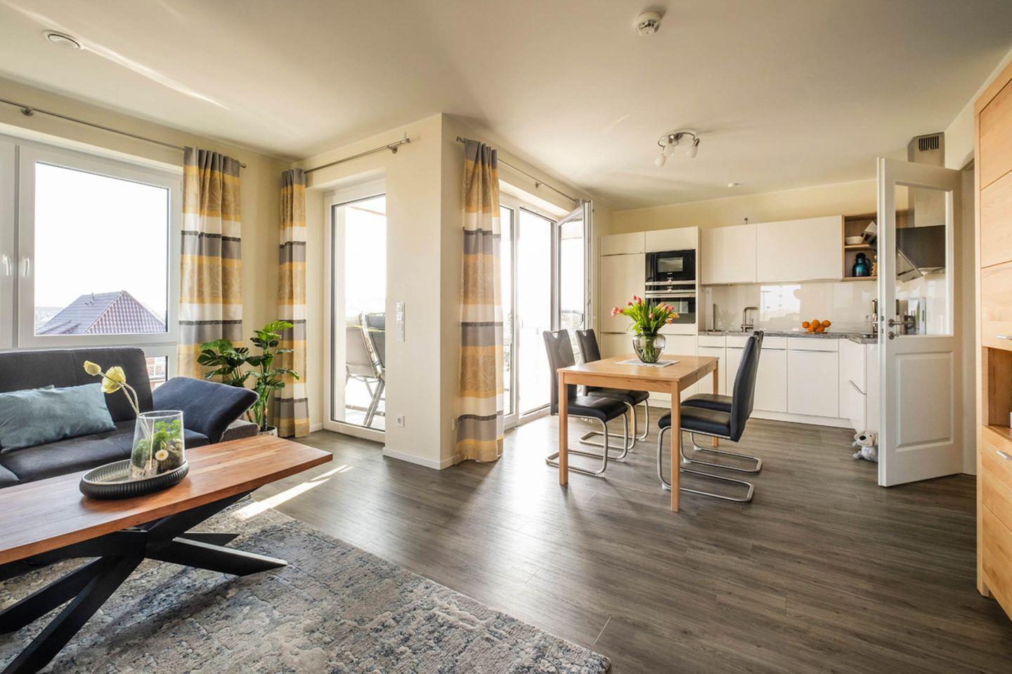 Das modern ausgestattete Haus Strandläufer Apartment 3.7 (Wolkenkieker) in Büsum überzeugt mit 92 m² Wohnfläche, Meerblick und Balkon. Zwei Schlafzimmer, eine offene Küche, Sauna und Fitnessraum bieten hohen Komfort. WLAN, Parkplatz sowie Nähe zu Strand, Stadtzentrum und Einkaufsmöglichkeiten sind inklusive.