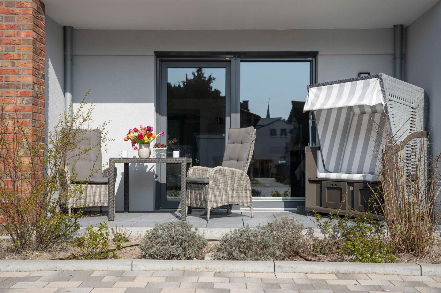 Ein Strandkorb für die Nutzung durch alle Feriengäste steht am Haus für Sie bereit.