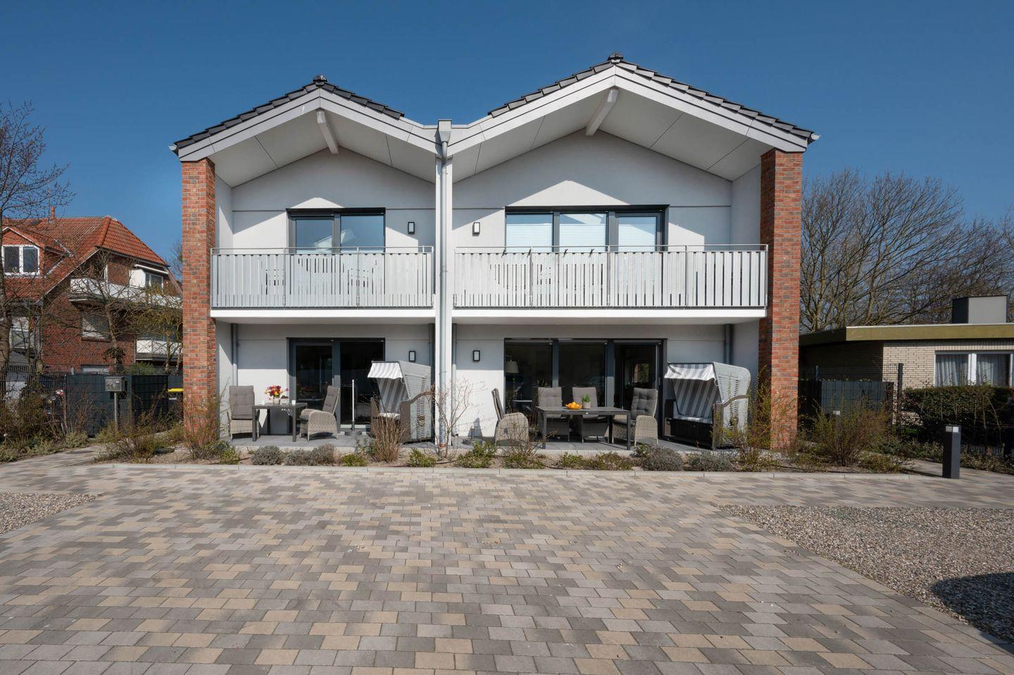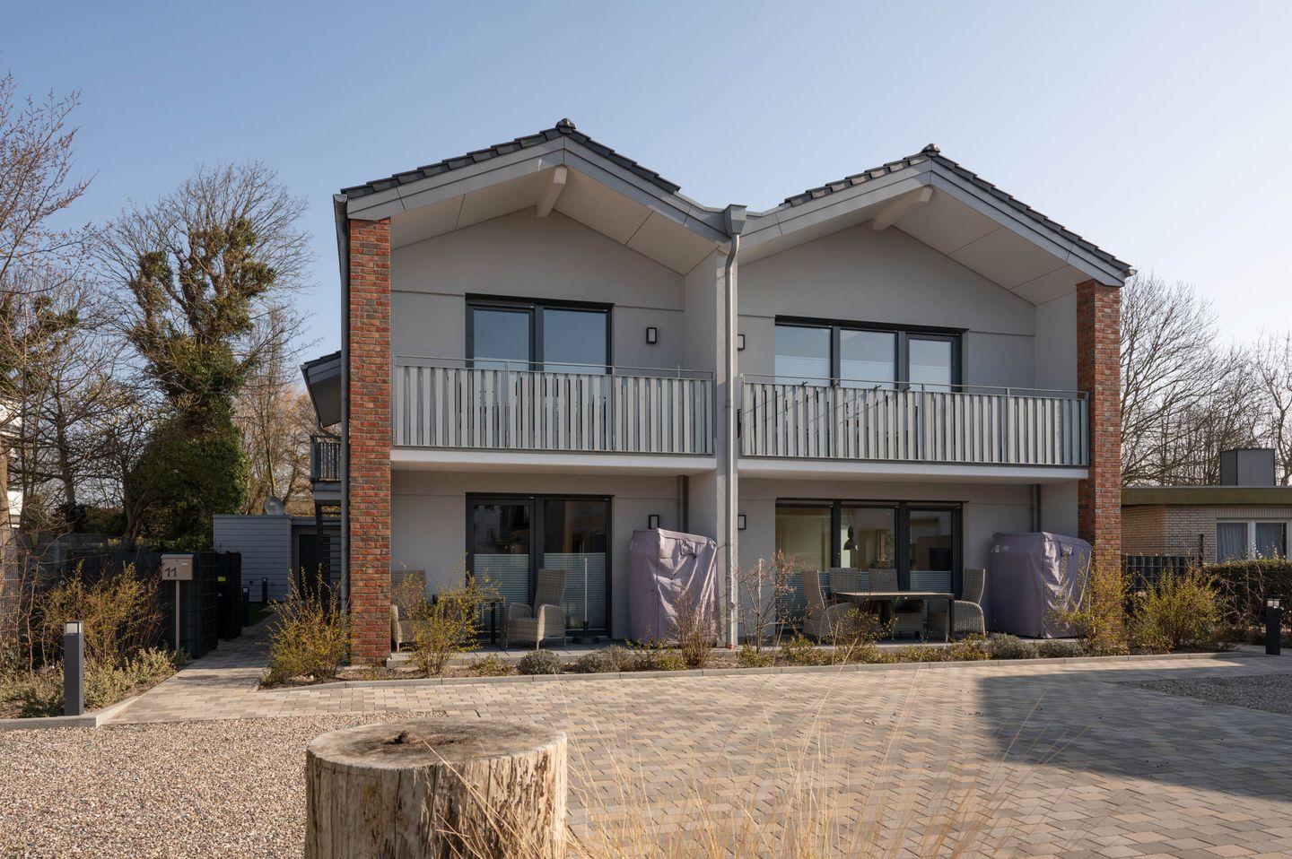 Der Neubau bietet ein gemütliches, naturverbundenes Ambiente durch die Kombination aus norddeutschem Charme und hochwertigem, nachhaltigem Design. Der Blick ins Grüne aus dem Schlafzimmer und die Möglichkeit, die Sonne auf dem eigenen Balkon zu genießen, steigert den Wohlfühlfaktor. Doch selbst wenn das gute Wetter mal ausbleibt, ist das kuschelige Sofa der perfekte Rückzugsort.
