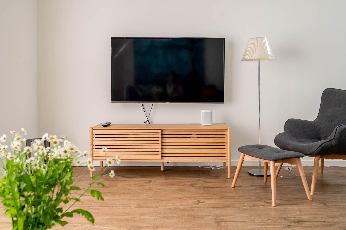 Technik: Je ein Fernseher in Schlaf- und Wohnzimmer, Sonos-Lautsprecher mit Bluetooth für Smartphone-Anschluss, kostenloses WLAN, Staubsauger