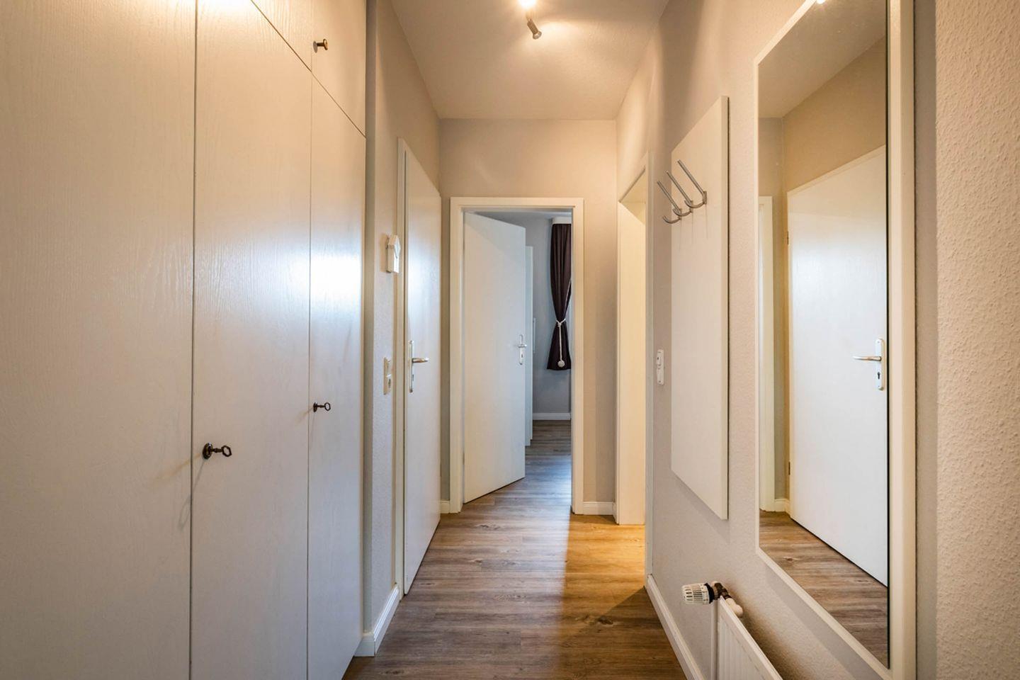 Die Küche und der Essbereich sind im Wohnbereich integriert. Das Schlafzimmer ist mit einem Doppelbett und TV ausgestattet. Das Bad verfügt über eine Dusche/WC. Vom Wohnzimmer aus gelangt man auf die in Südwestlage liegende Terrasse mit Markise. Im Keller befinden sich eine Waschmaschine und ein Trockner (gebührenpflichtig) sowie ein Abstellraum für Fahrräder. Fährräder können auch vor dem Haus im Fahrradständer abgestellt werden. Das Haus verfügt über einen Aufzug.