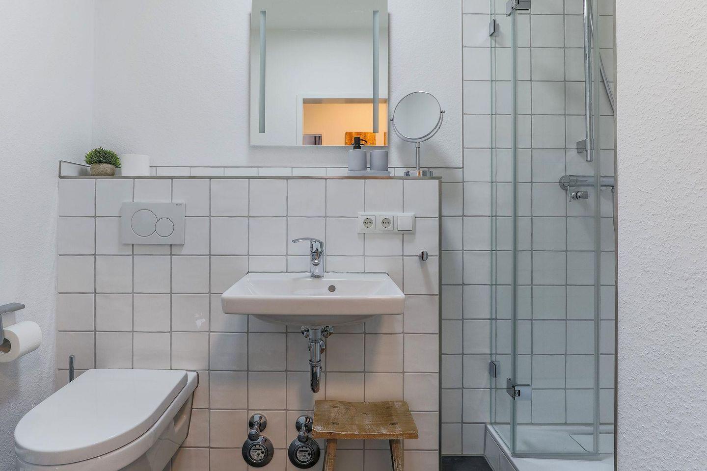 Sanitär: Duschbad, Handtuchheizung, Haar-Föhn, Kosmetikspiegel