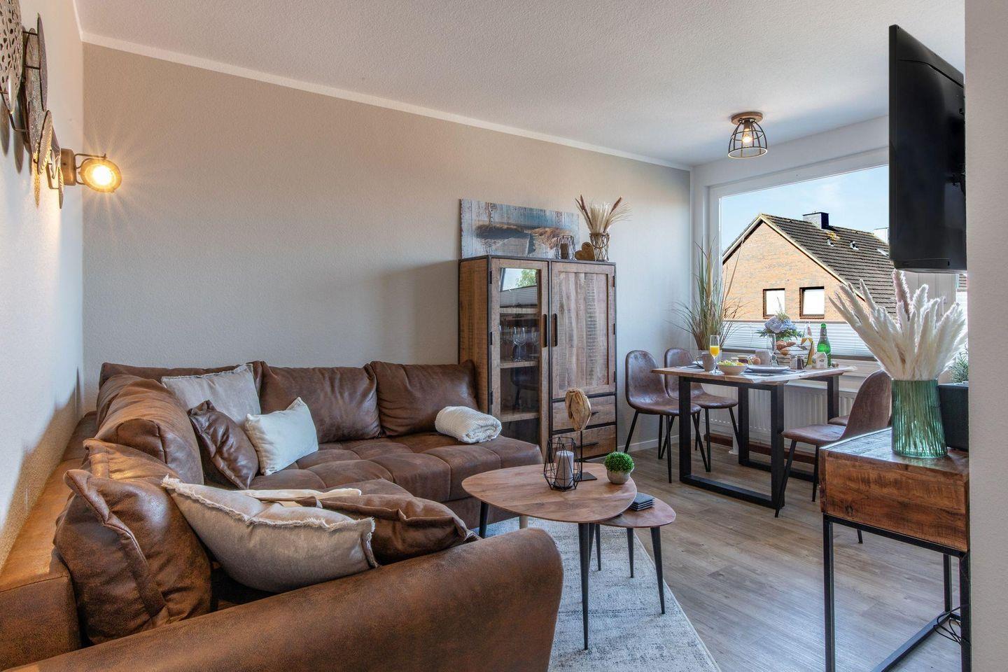 Haus Treibholz Apartment 9 in Büsum bietet auf 47 m² Wohnfläche zwei Schlafzimmer, einen offenen Wohn- und Essbereich mit moderner Küche, drei TVs, WLAN sowie einen Balkon. Die Unterkunft ist und liegt nur 250 Meter vom Meer, Strand und Einkaufs- sowie Restaurantmöglichkeiten entfernt. Ein Privatparkplatz steht zur Verfügung.